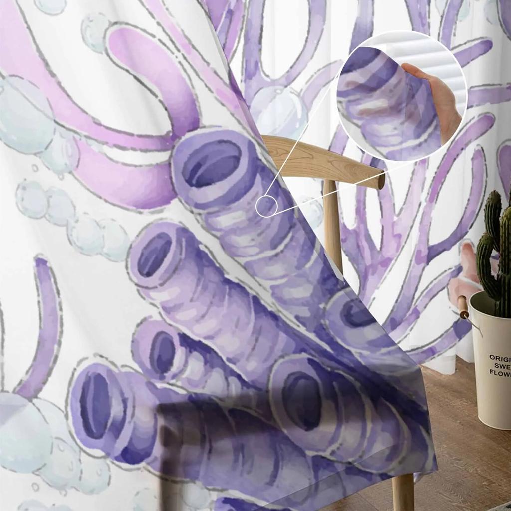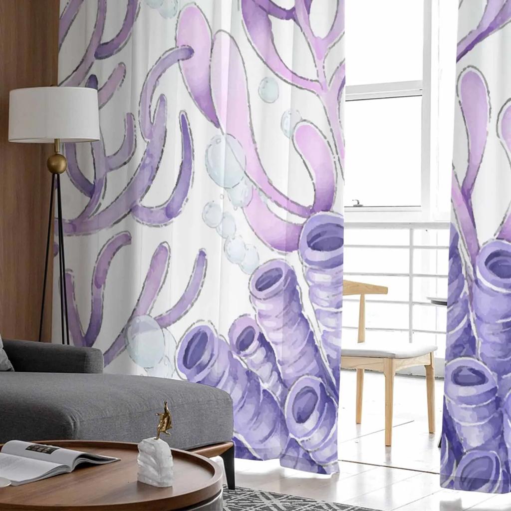 Океан Коралловые морские звезды акварельные тюлевые шторы для гостиной прозрачные шторы для спальни кухонные жалюзи вуаль шторы