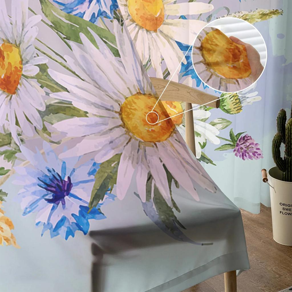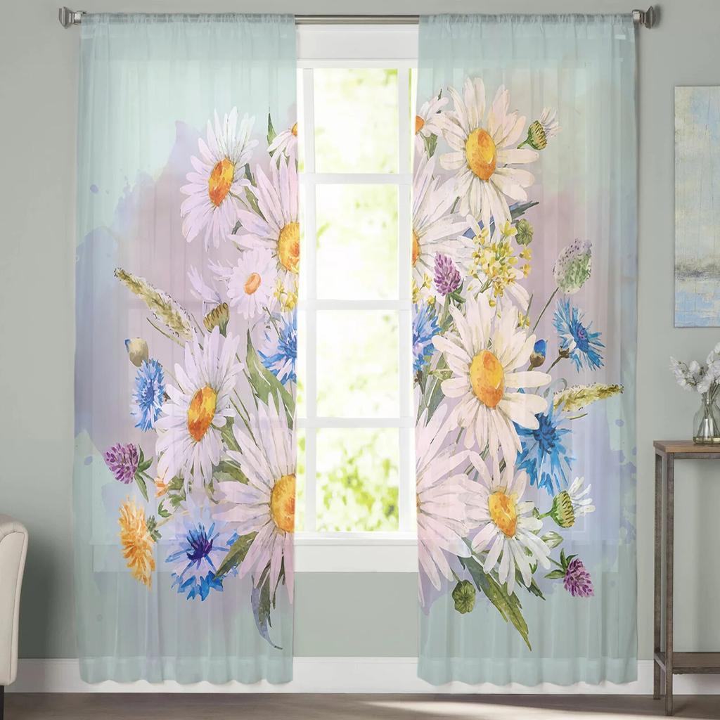 Цветы Ромашки Минималистская Прозрачная Вуаль Шторы на Окно Тюлевые Шторы Гостиная Украшение Балкона Шторы