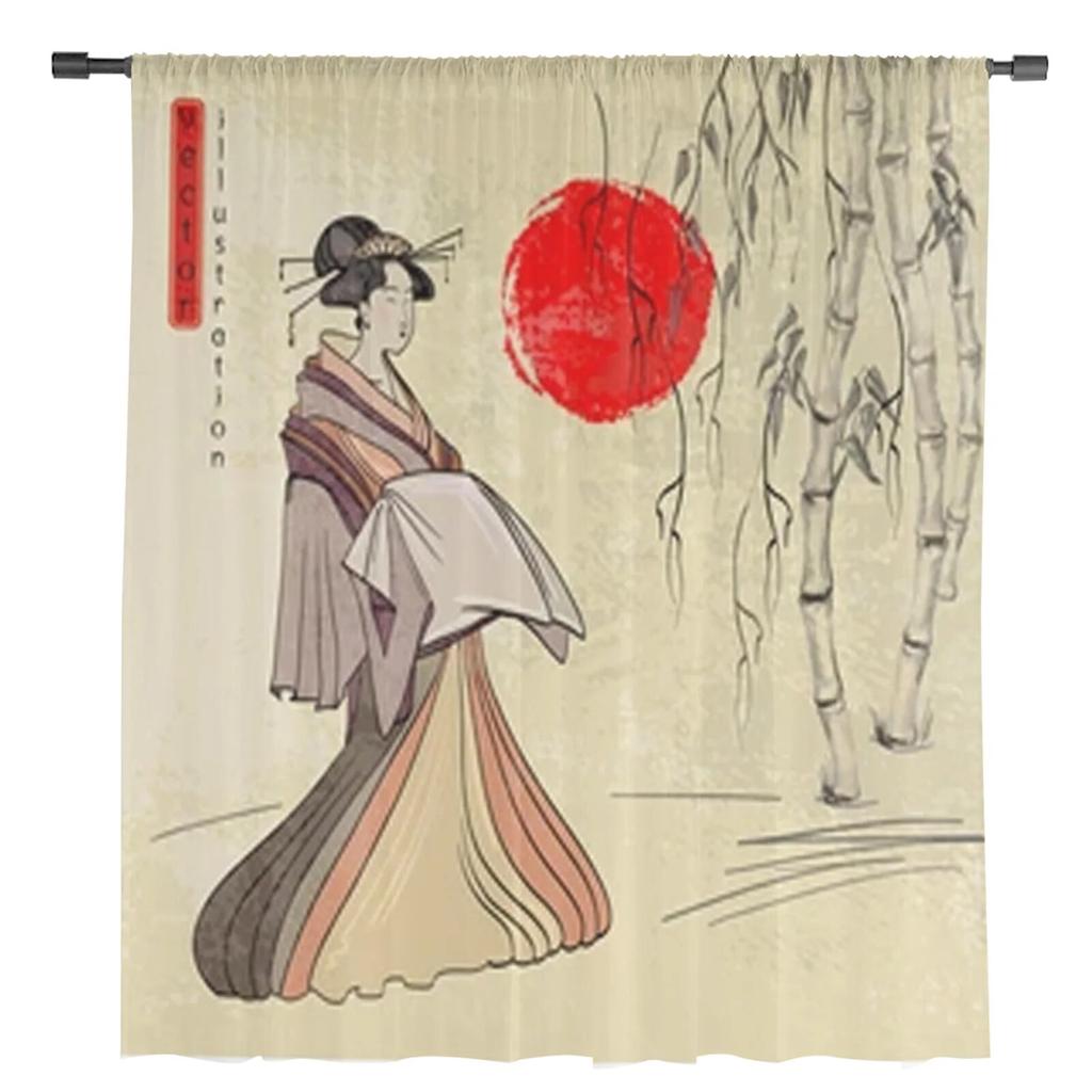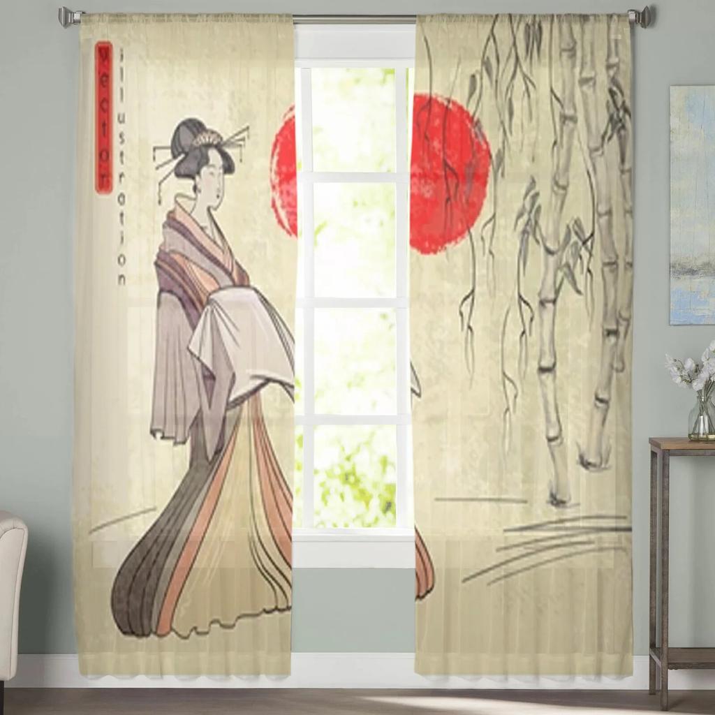 Древние японские прозрачные шторы «Гейша», вуаль для спальни, занавеска для гостиной, окна, прозрачные шторы для кухни, тюлевые шторы