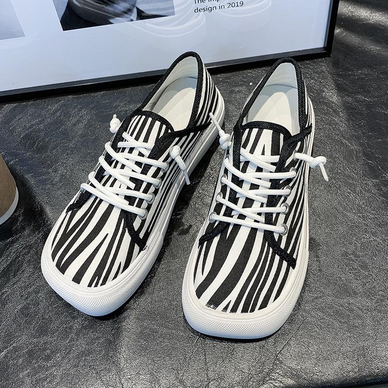 Холщовая обувь на толстой подошве, женские летние новые туфли на шнуровке с квадратным носком, корейская версия трендовых туфель, клетчатая студенческая обувь с леопардовым принтом