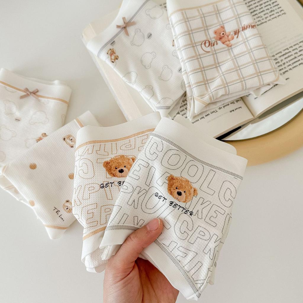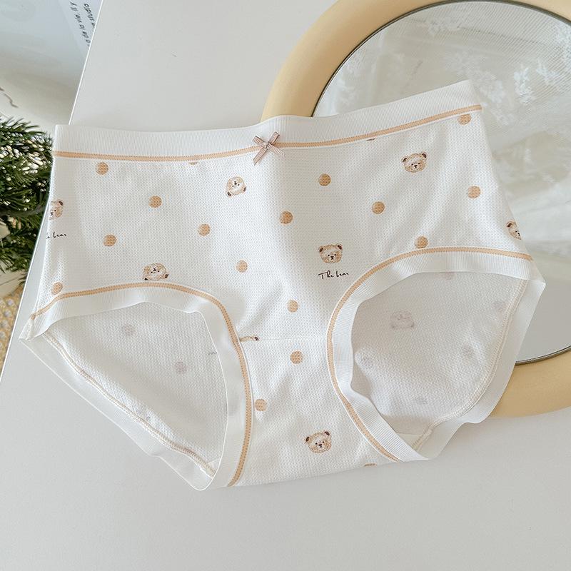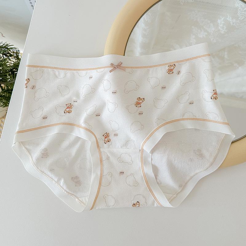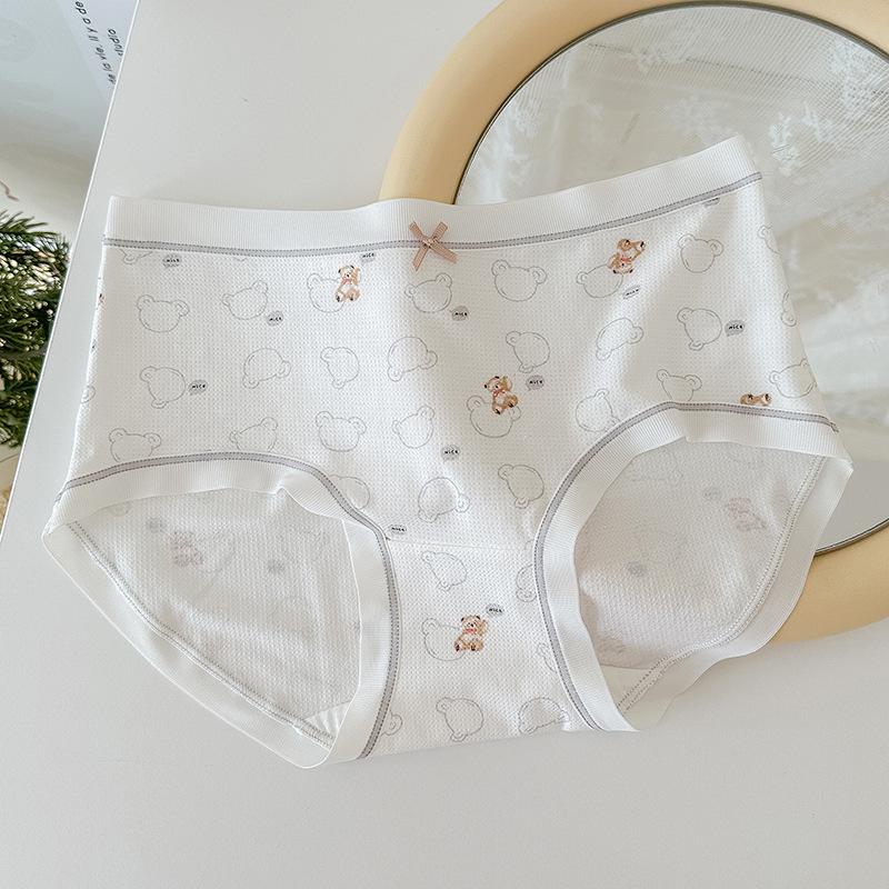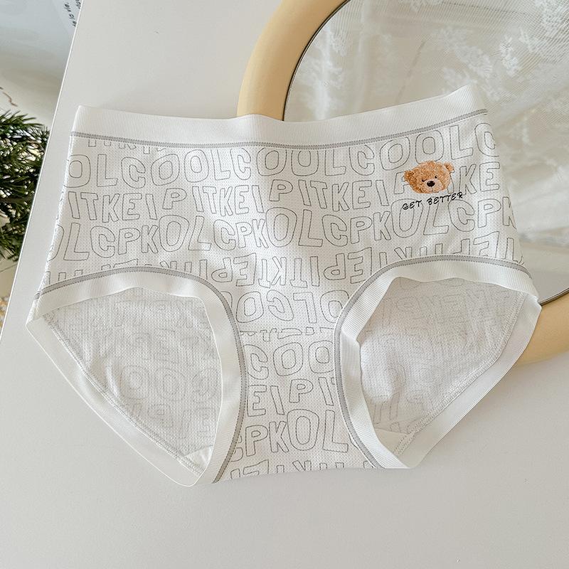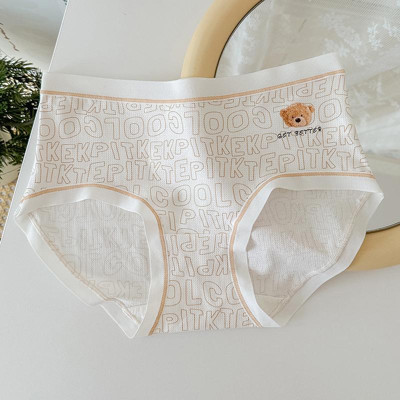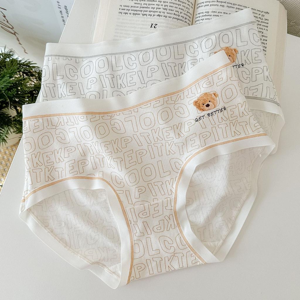 Женское нижнее белье с алфавитным принтом, милые девчачьи трусики с медвежонком, удобные антибактериальные дышащие полные трусы