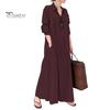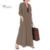 Женское весеннее платье с отложным воротником, свободное однобортное однобортное платье с длинными рукавами и карманами на пуговицах, тип рубашки до щиколотки, осеннее повседневное платье макси