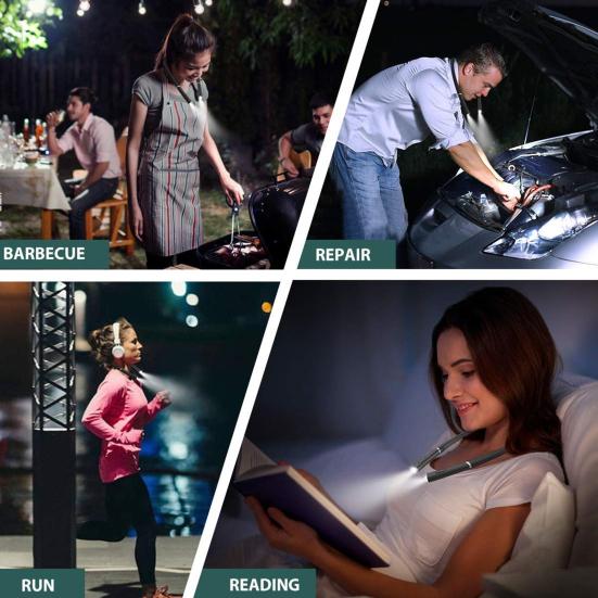Лежите ли вы в постели, на диване, путешествуете или находитесь в походе, этот легкий и портативный фонарь можно использовать где угодно.. Он также устойчив к поту и перезаряжается, что устраняет необходимость замены батарей.. Наслаждайтесь чтением без помощи рук с помощью нашей гибкой и прочной светодиодной лампы для чтения.