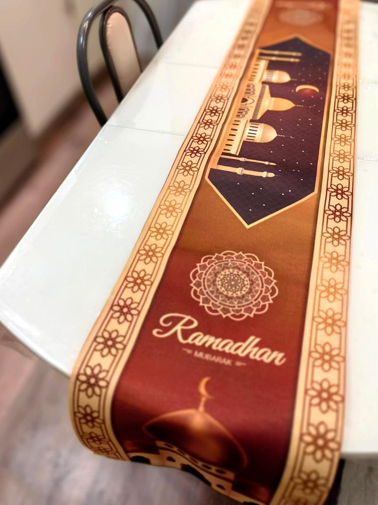 Праздничная скатерть дорожка ко дню Рамадана. Размер 183x33 Качественная печать. Материал плотный. Хорошо прилегает к столу. Цвет очень приятный. У продавца множество красивых вариантов дорожек. Присмотритесь. Рекомендую.