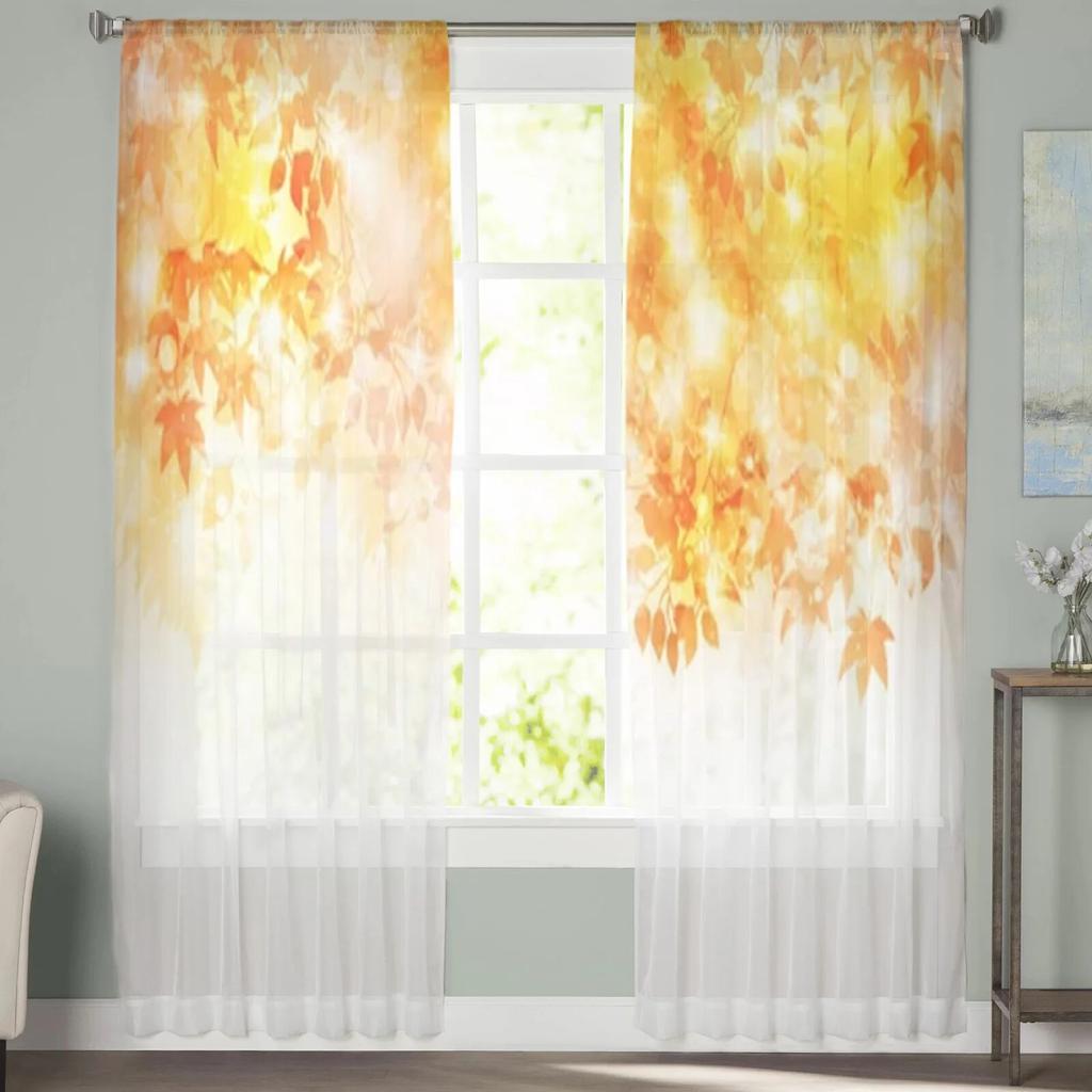 Осенние прозрачные шторы с кленовыми листьями, вуаль для спальни, прозрачные шторы для окон, кухни, тюлевые шторы