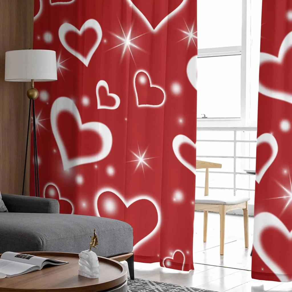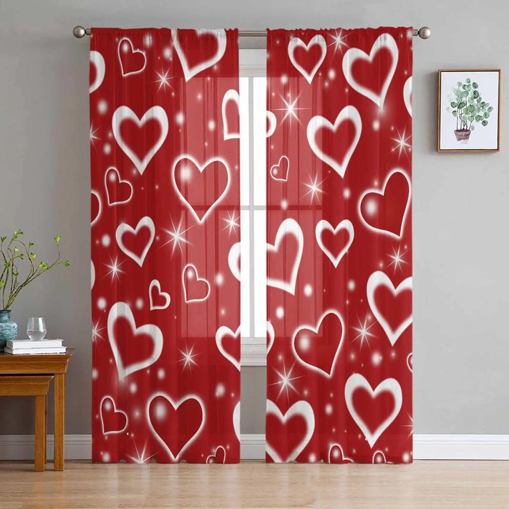Тюлевые шторы на день Святого Валентина с красным сердцем для гостиной, прозрачные занавески для спальни, кухни, жалюзи, вуаль, шторы