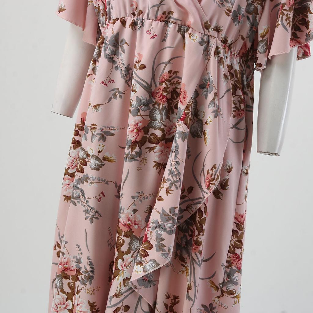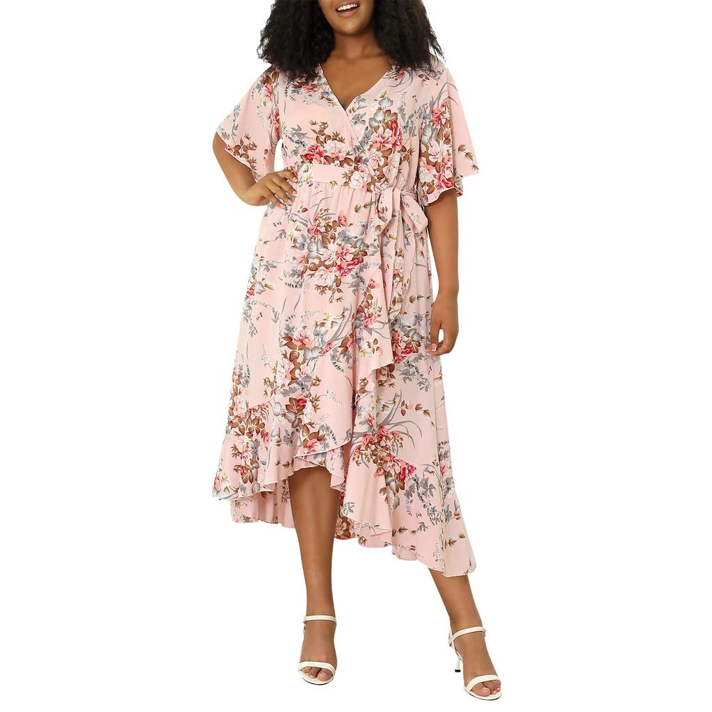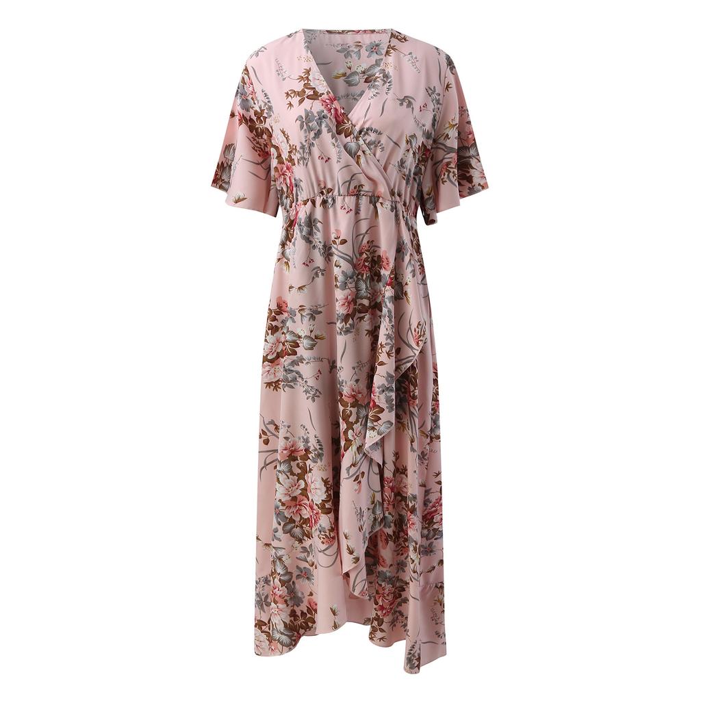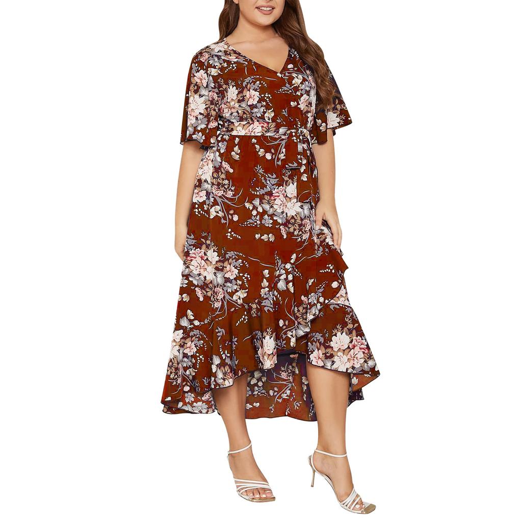 Летнее женское платье размера плюс с v-образным вырезом и короткими рукавами, свободные платья с высокой талией и нерегулярным подолом, рыбий хвост