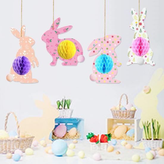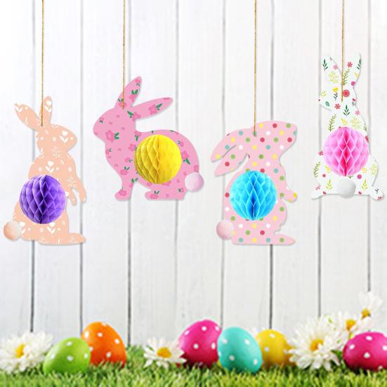 4 шт. подвески в виде пасхального кролика очаровательный внешний вид шнурок дизайн изысканный узор края легко повесить пасхальные кролики подвесные подвески товары для вечеринок