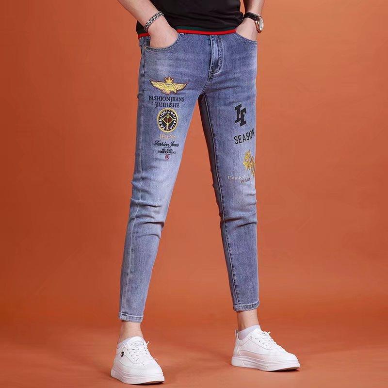 Тонкая секция высококачественных джинсов с вышивкой, мужские весенне-летние тонкие повседневные эластичные длинные брюки для мужчин
