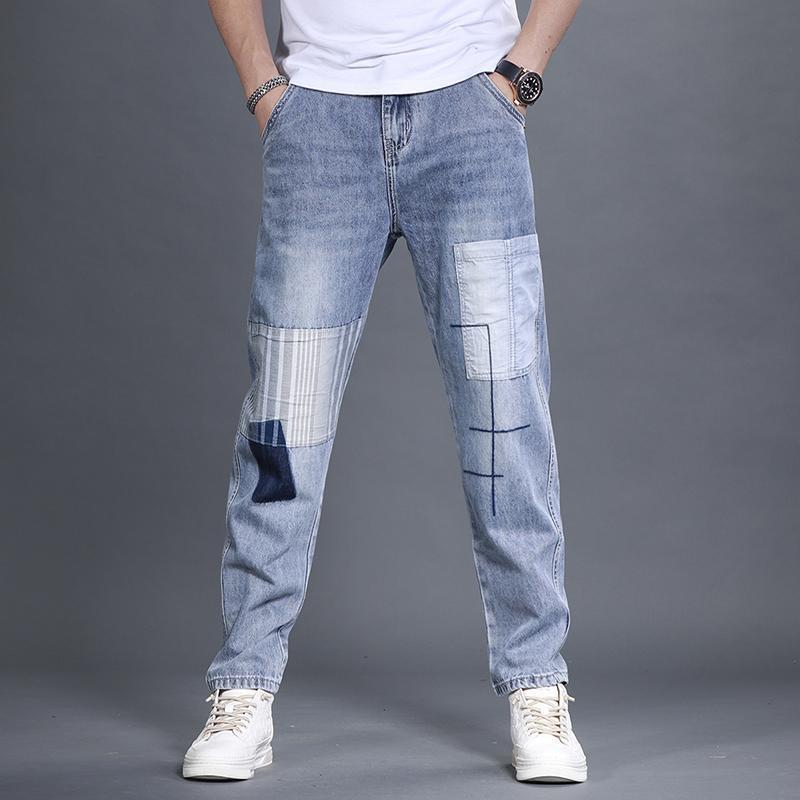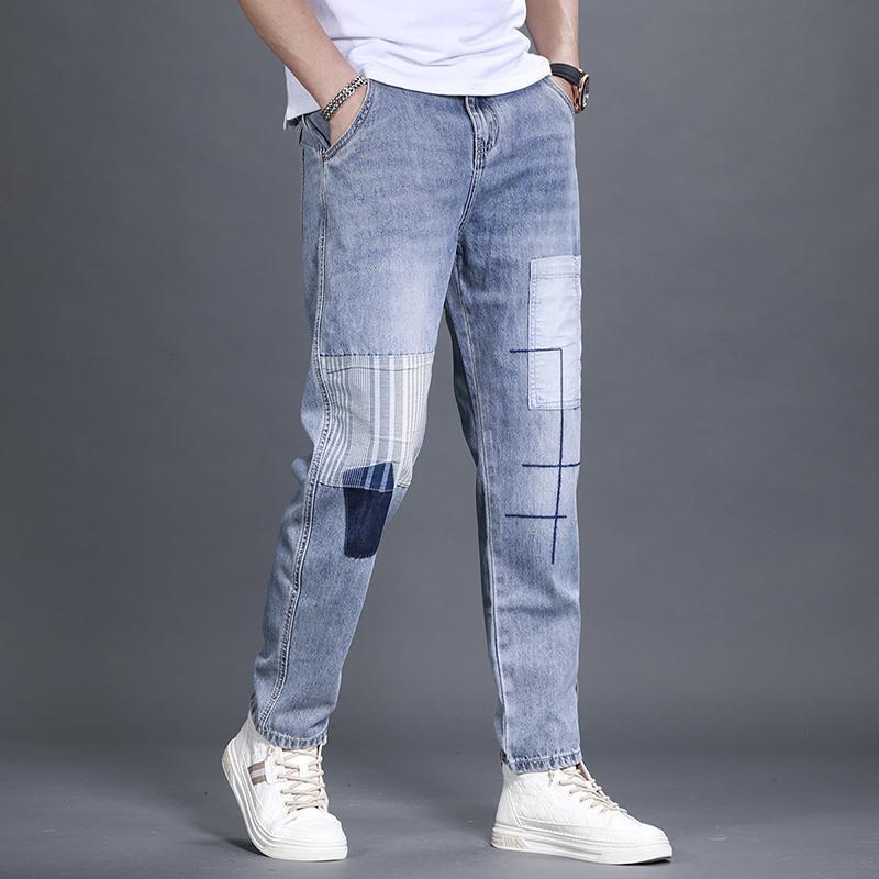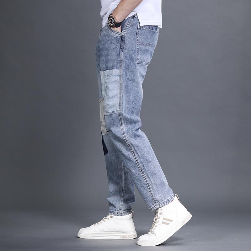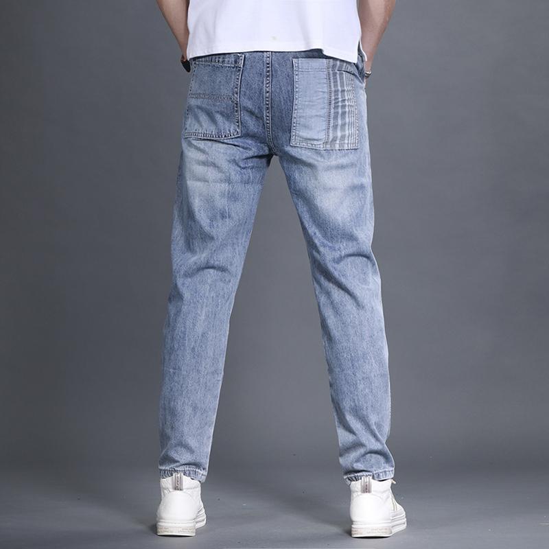Высококачественные тяжелые мужские весенние светло-голубые джинсы на молнии, маленькие брюки