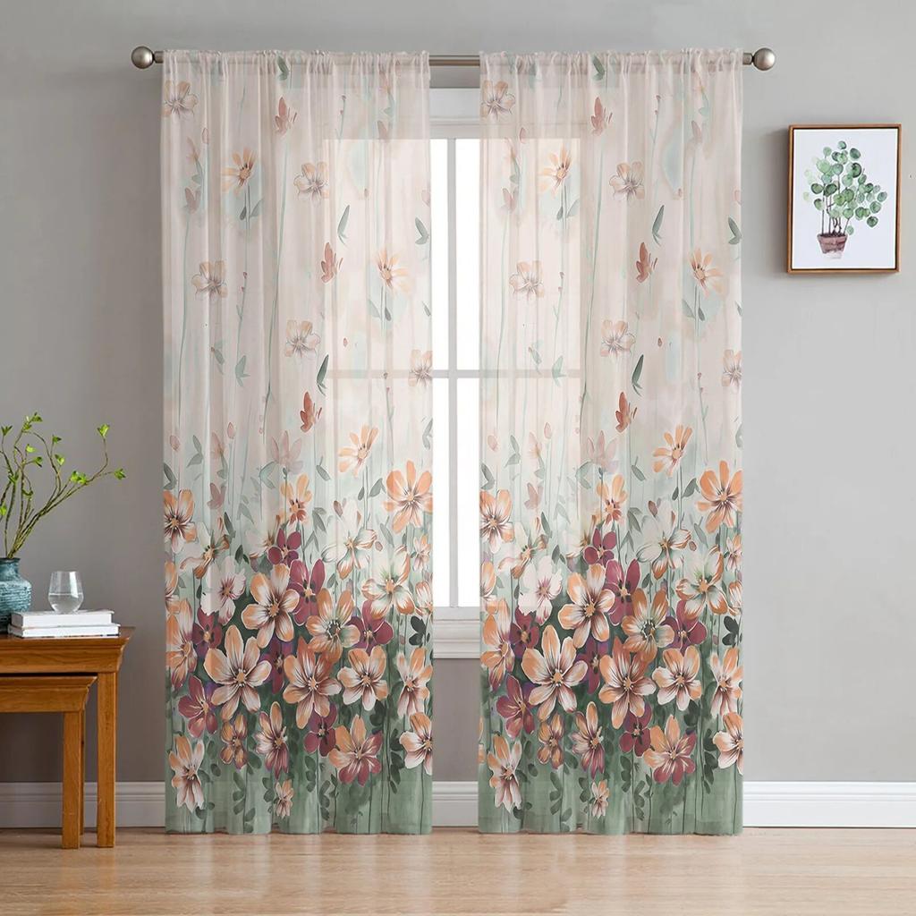 Цветы и растения, градиентные оконные тюлевые шторы для гостиной, кухни, современные оконные занавески, вуали
