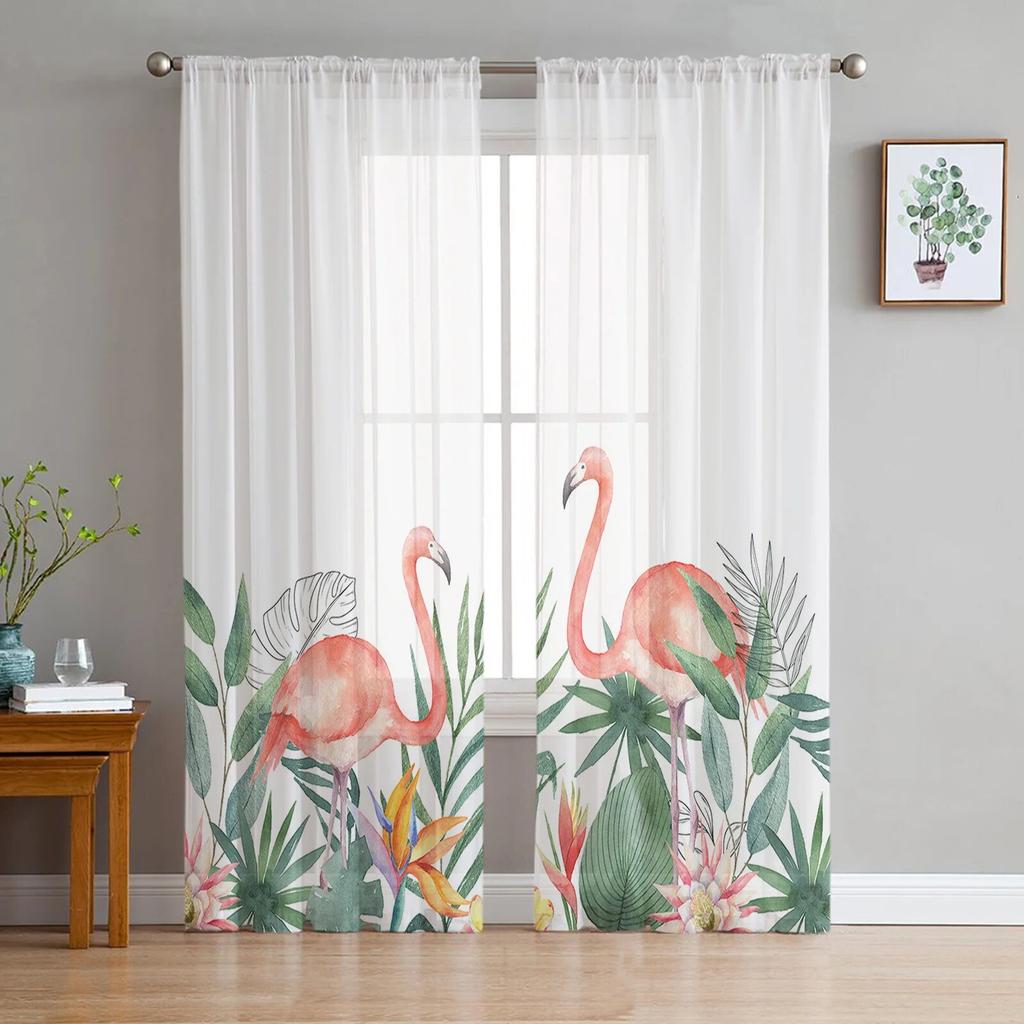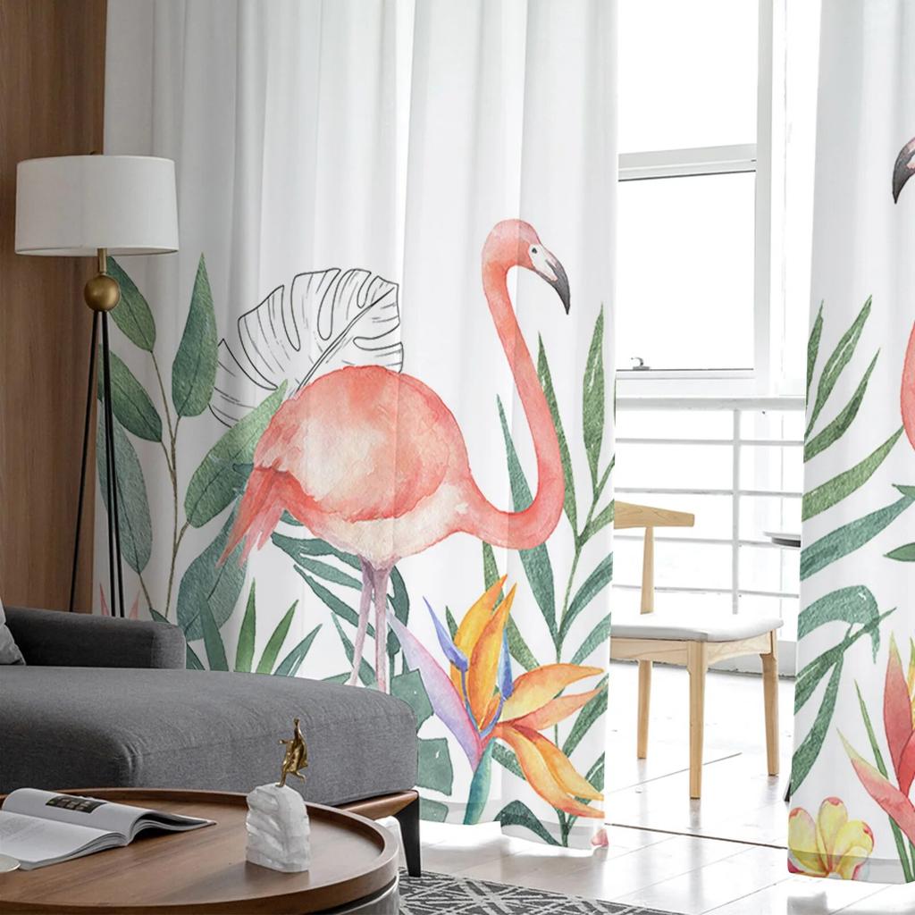 Ins стиль тропические растения фламинго прозрачные шторы для гостиной спальни тюль занавеска для кухни вуаль шторы жалюзи панели