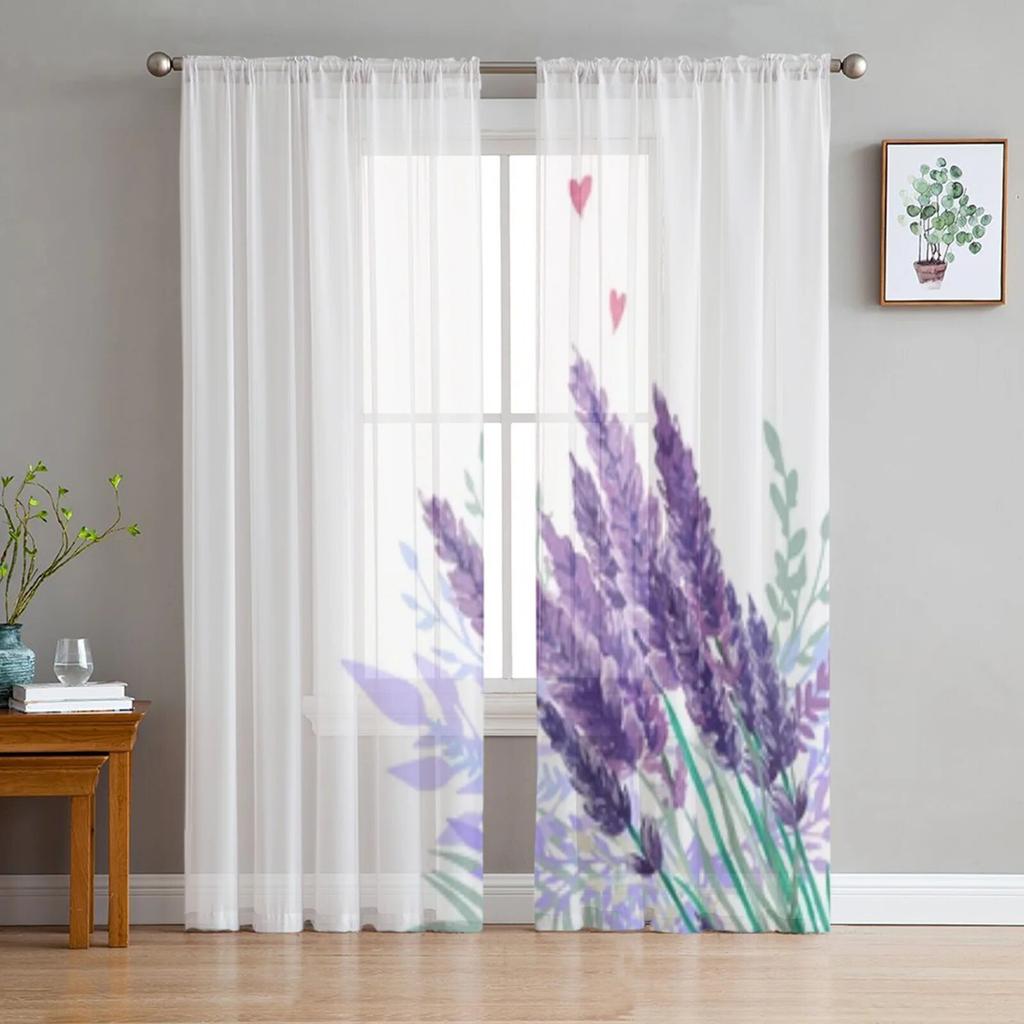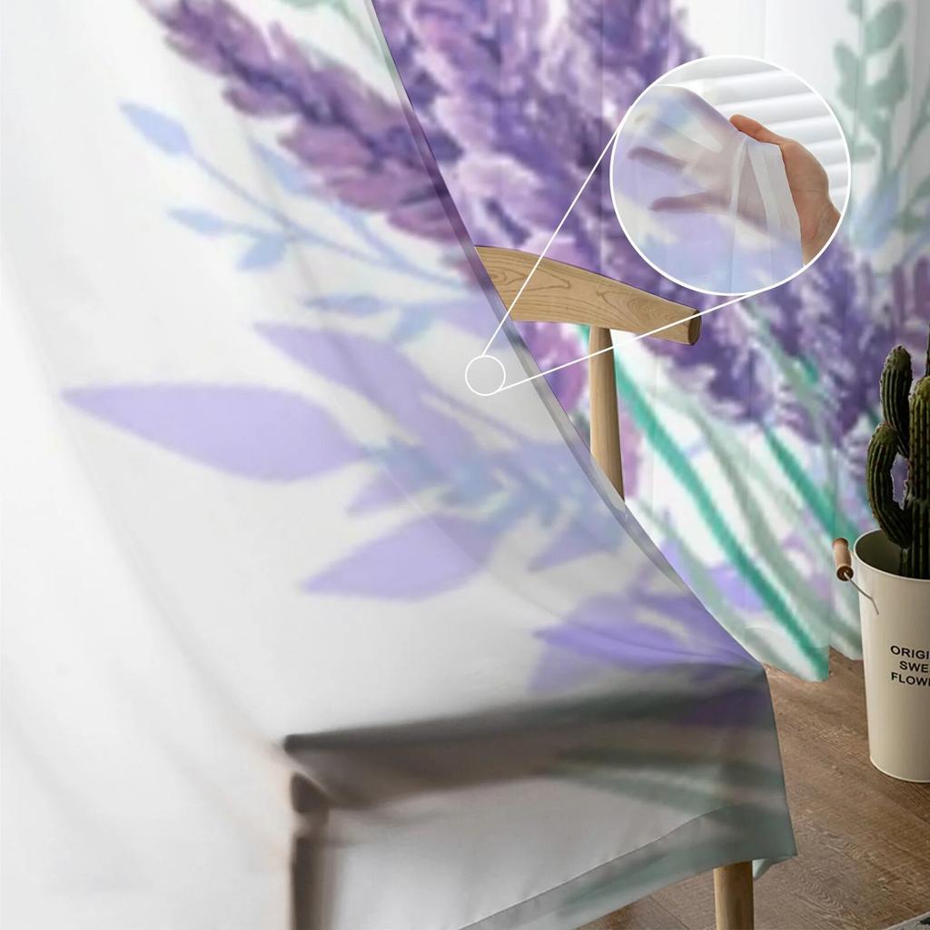 Акварельный букет лаванды, тюль, оконная занавеска для гостиной, спальни, вуаль, прозрачные шторы, кухонные шторы, шторы