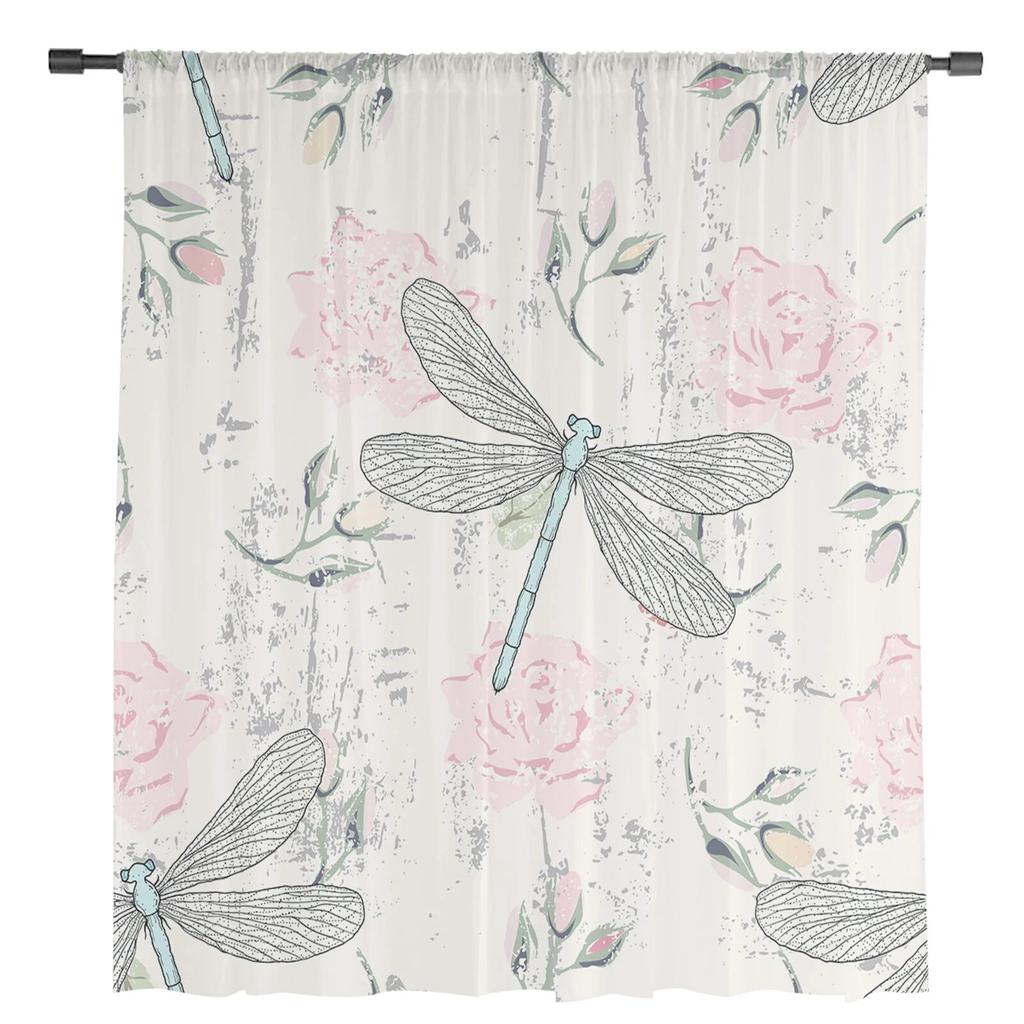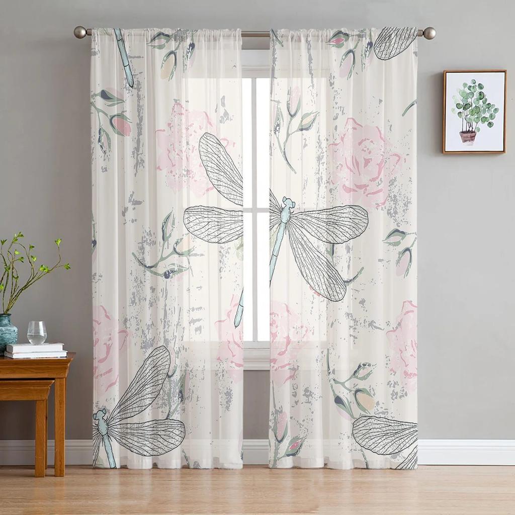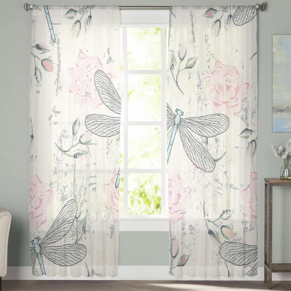 Шифоновые прозрачные шторы с цветком стрекозы для гостиной, украшение для дома, оконная вуаль, тюлевые занавески, шторы