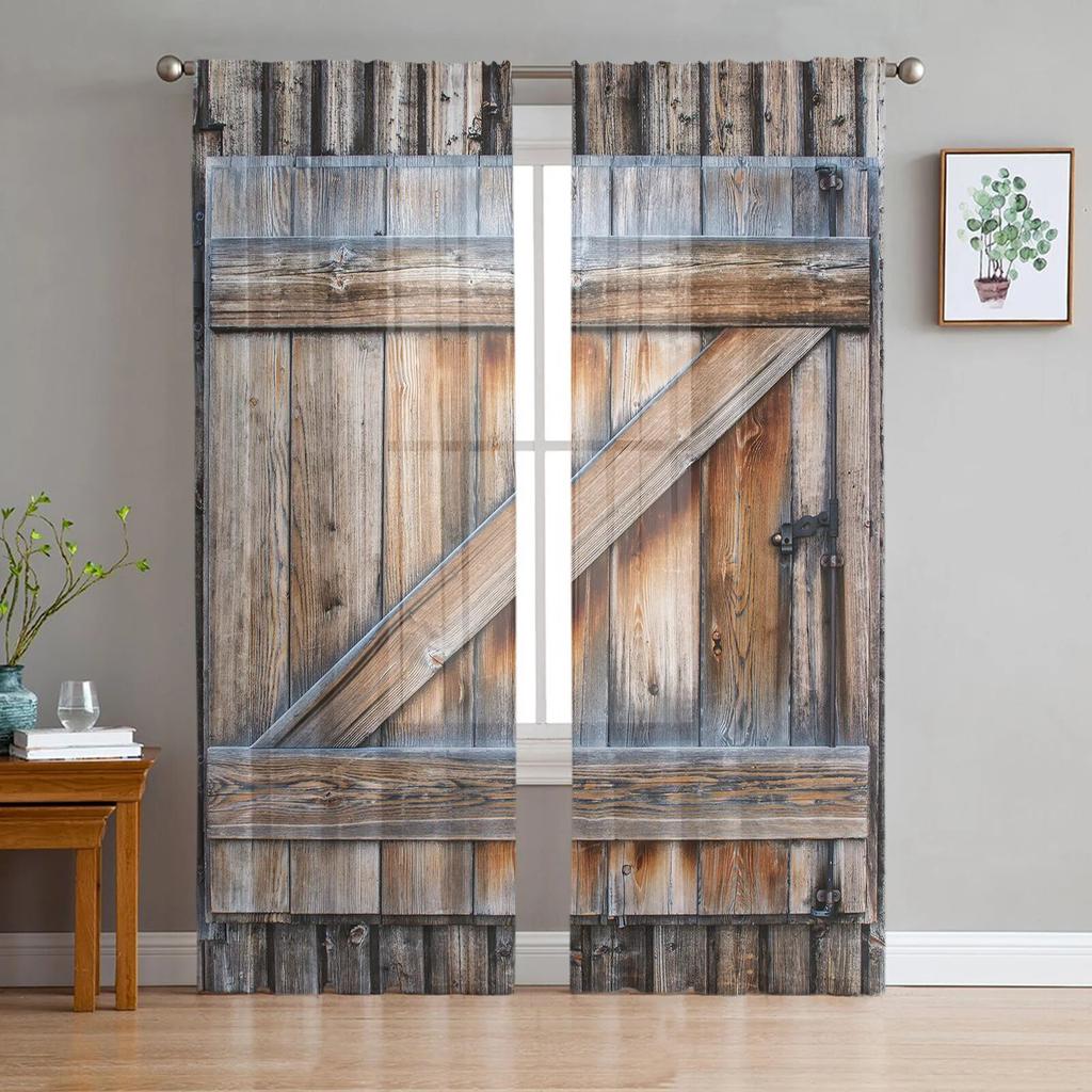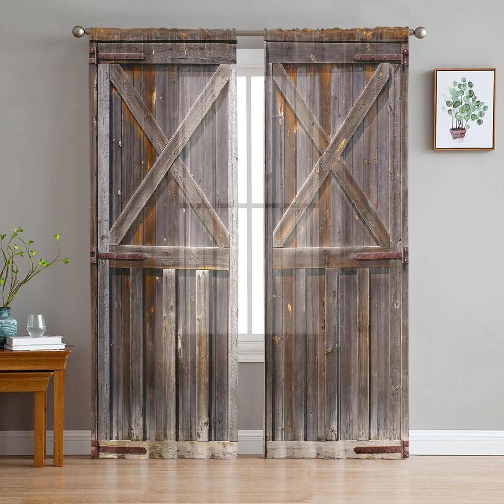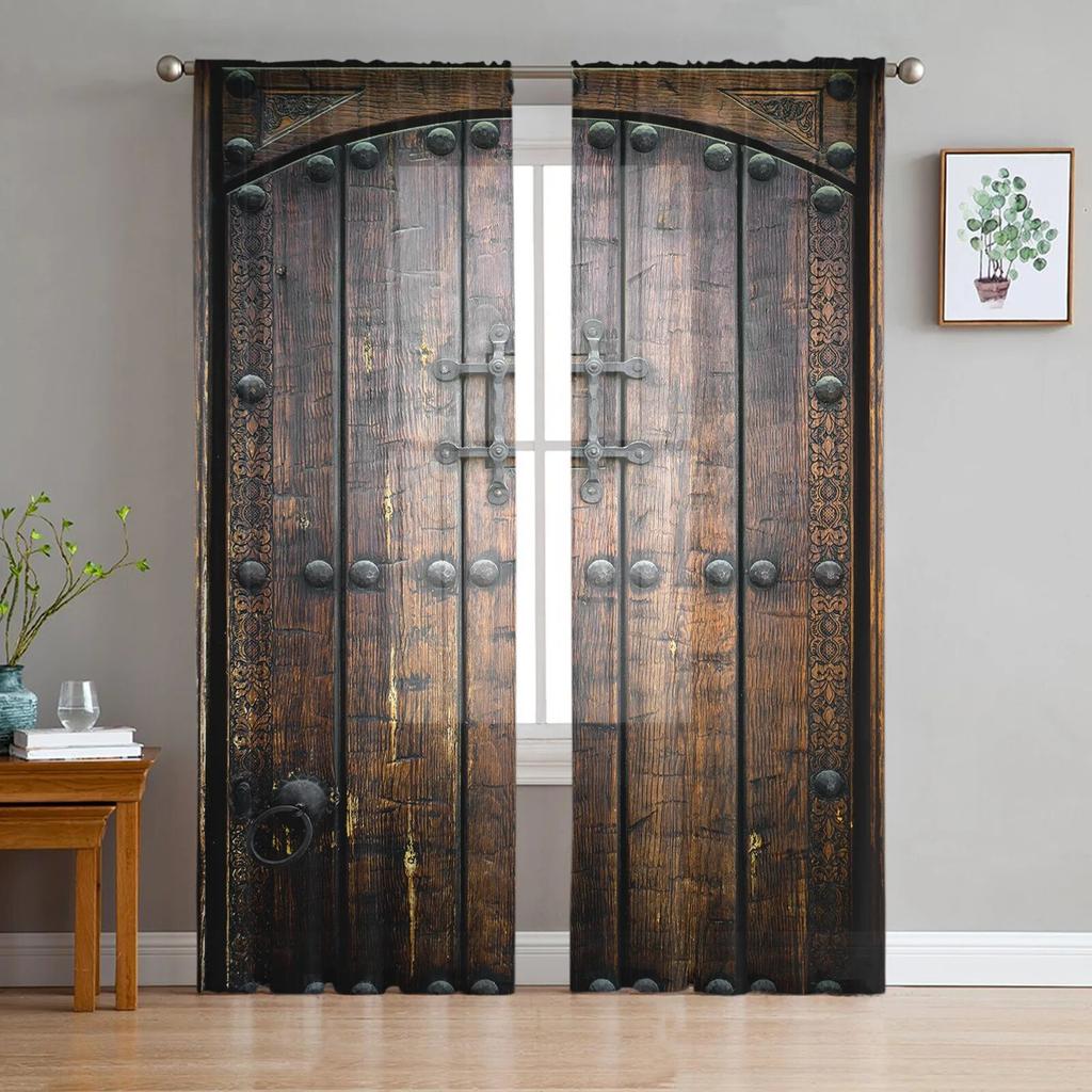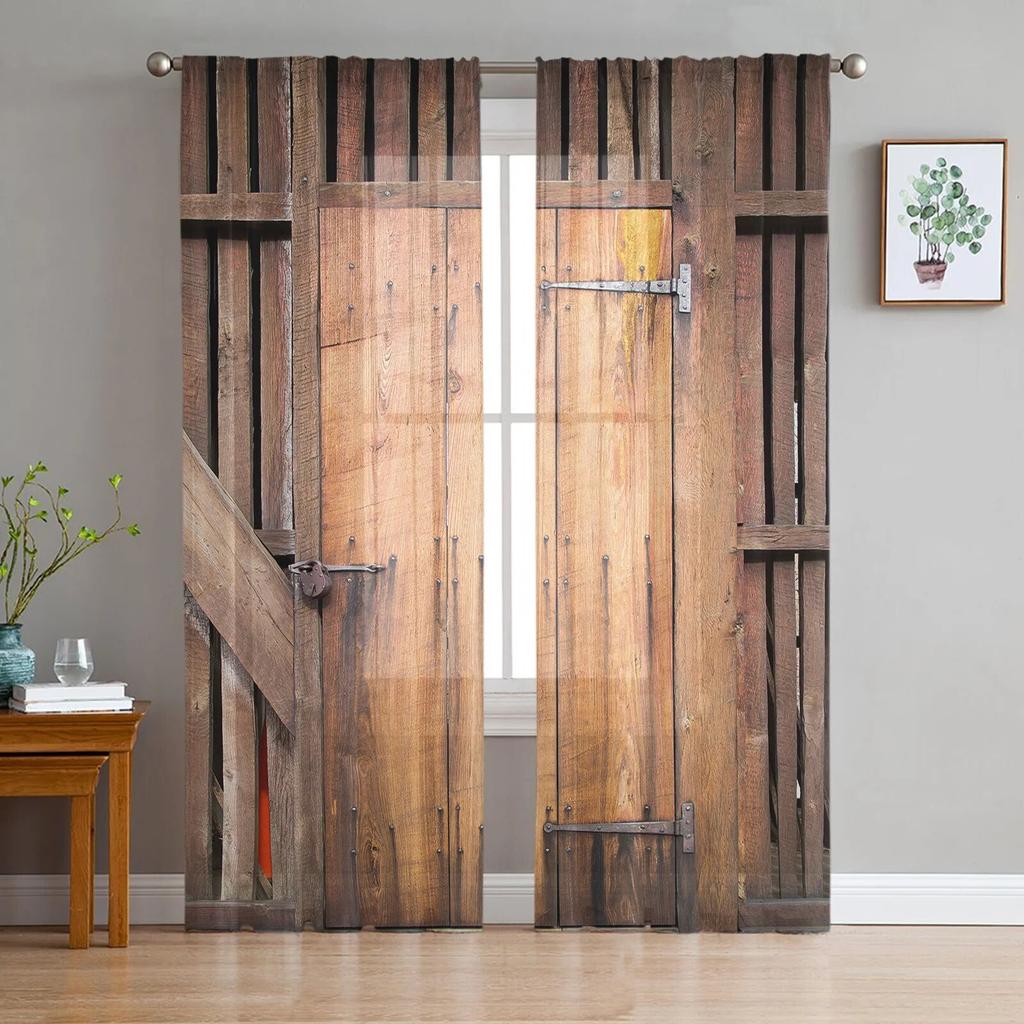 Деревянная дверь, краска, ретро, современные шторы для гостиной, тюлевые шторы, прозрачные оконные занавески для спальни, аксессуары, декор