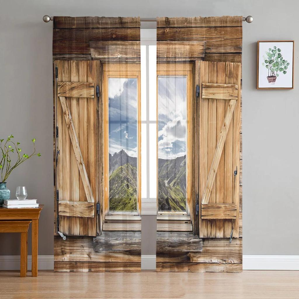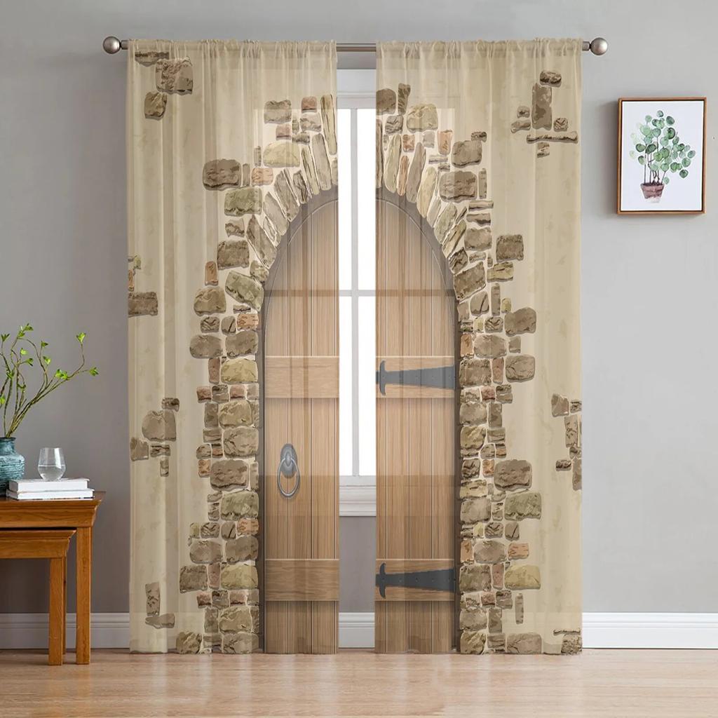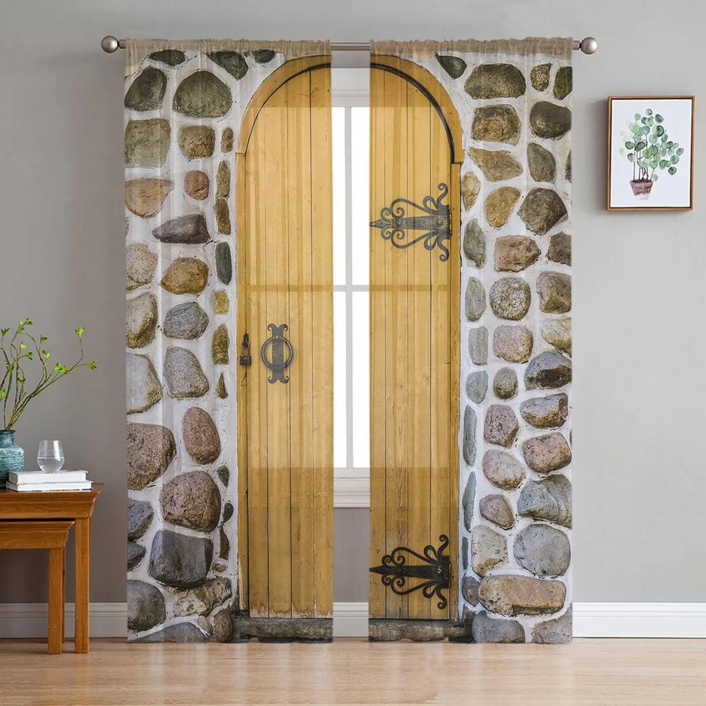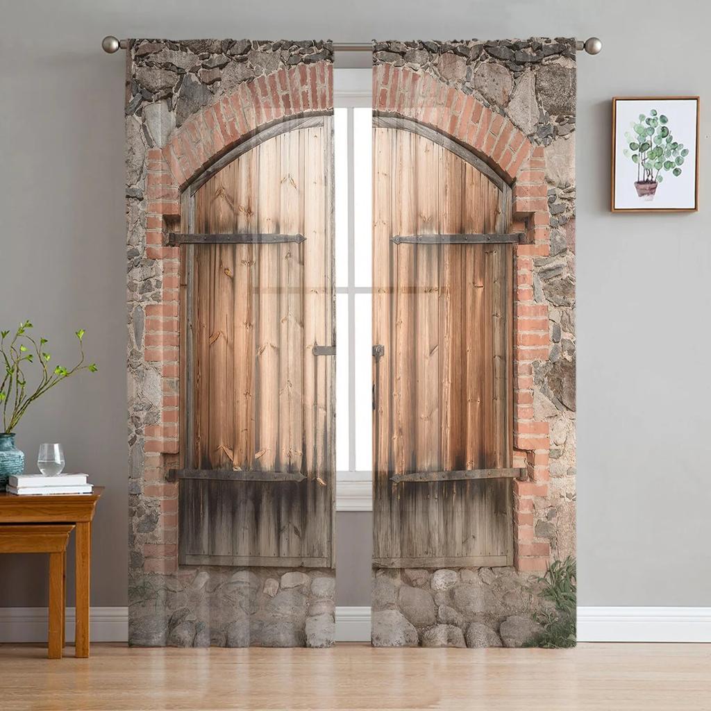 Деревянная дверь, краска, ретро, современные шторы для гостиной, тюлевые шторы, прозрачные оконные занавески для спальни, аксессуары, декор
