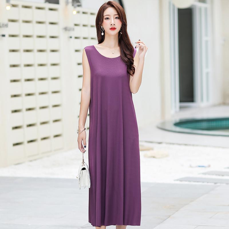 Летнее платье без рукавов, женское эластичное однотонное повседневное длинное платье больших размеров