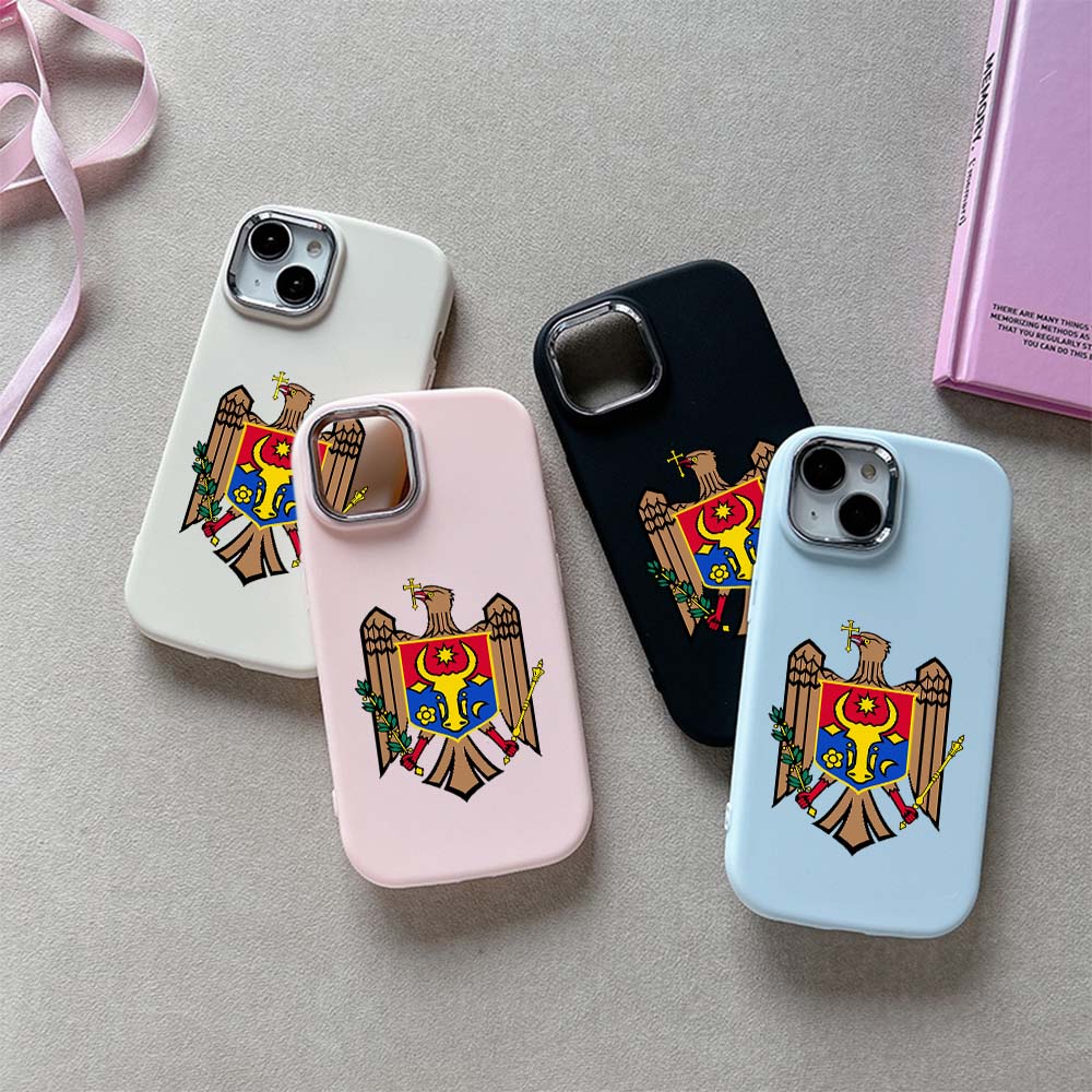 N21 Мягкая задняя крышка с национальным гербом Молдовы для iPhone 15 Pro Max Samsung A14 Xiaomi Poco F5 Redmi Huawei Honor Plated Frame Protector Case