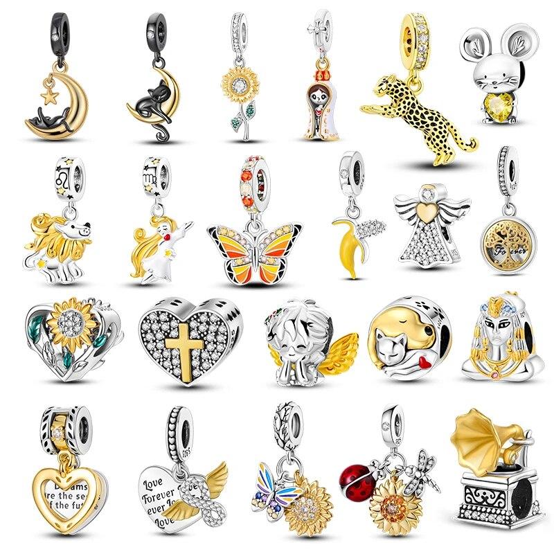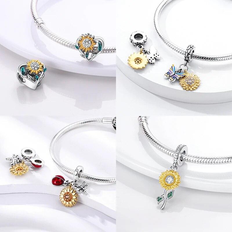 Стерлингового серебра 925 пробы, позолоченный кулон в виде бабочки с подсолнухом, подвески из бисера, подходят для оригинального нового браслета, ожерелья, ювелирные изделия «сделай сам», подарок