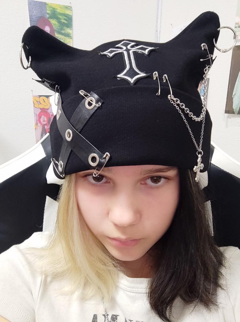 Шляпа в стиле панк с кошачьими ушками, шерстяная шапка с перекрестной цепочкой, осенне-зимняя теплая шапка с кошачьими ушками — купить товар онлайн с бесплатной доставкой по всему миру!