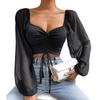 Женские топы с пышными рукавами, сексуальные облегающие футболки с v-образным вырезом и шнуровкой