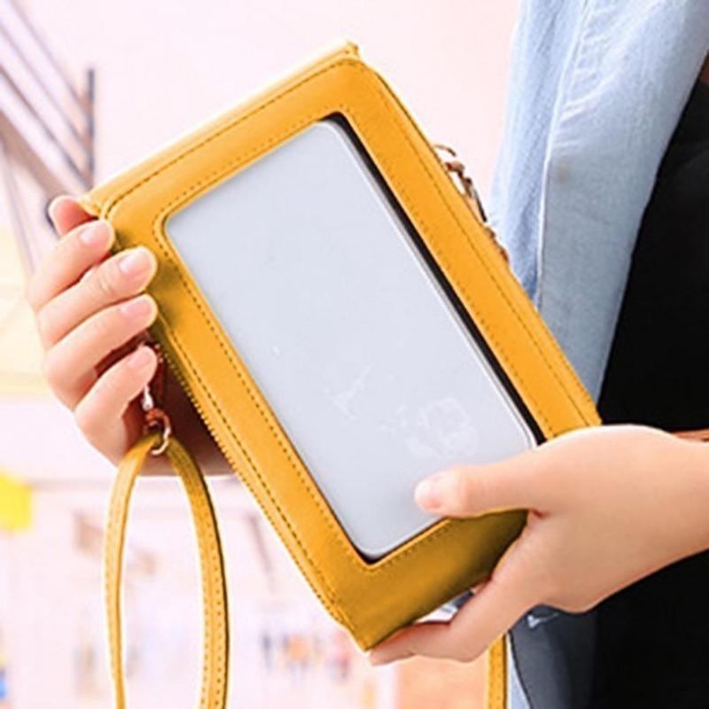Женская модная сумка для мобильного телефона с сенсорным экраном, вертикальная мини-сумка через плечо, кошелек для монет