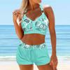 Женский купальник с бретелями и красочным флуоресцентным принтом, бикини с коротким топом, купальник