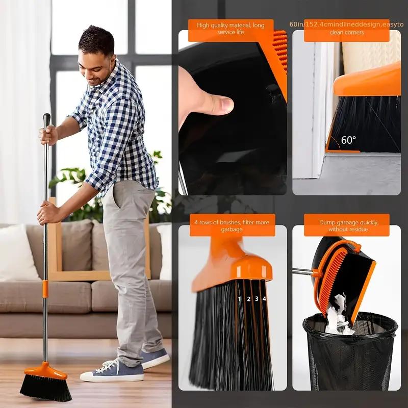 Эффективная уборка с помощью универсального выдвижного набора метлы и совка, идеально подходящего для дома, офиса, патио — прочный, легкий, компактный.