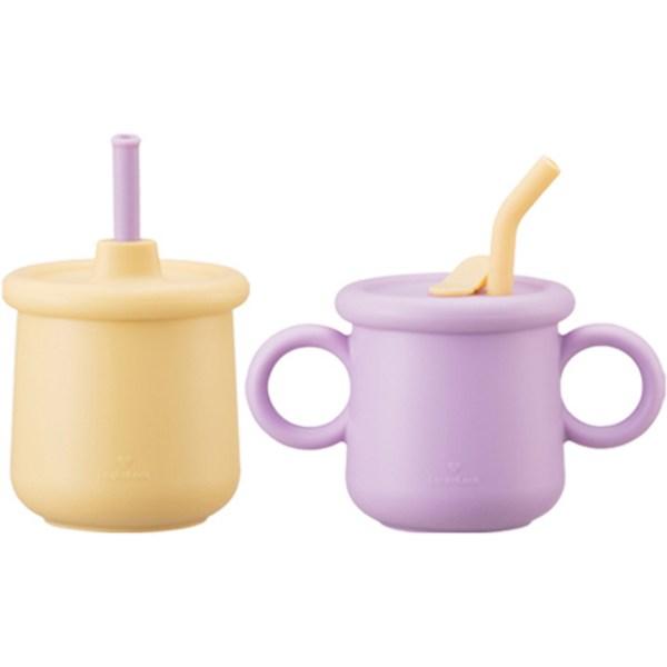 Набор силиконовых соломенных чашек Lock&Lock Littlerup, 200 мл, обычный + носик, лавандовый, желтый, 1 комплект