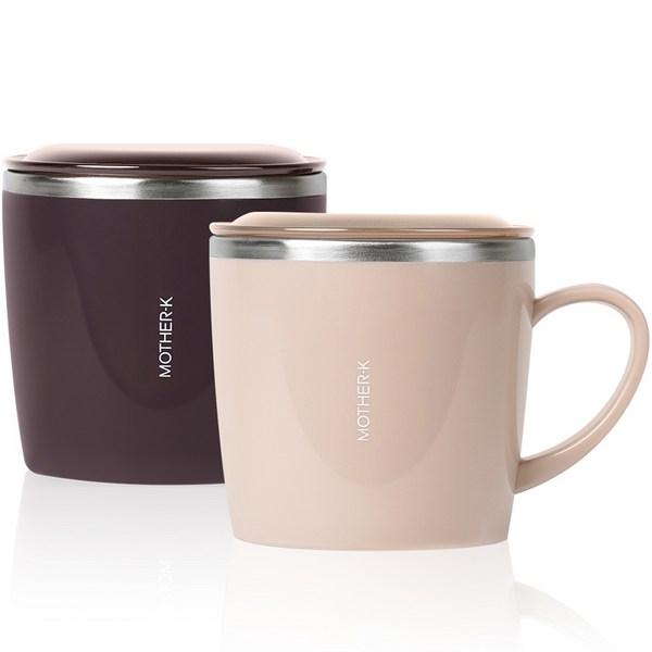 Чашки Mother K из нержавеющей стали (2 типа) + крышки (2 типа) комплект, бежевый, фиолетовый, 1 комплект