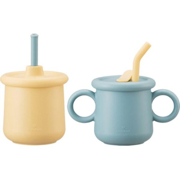Набор силиконовых соломенных чашек Lock&Lock Littlerub, 200 мл, обычный + носик, небесно-голубой, желтый, 1 комплект