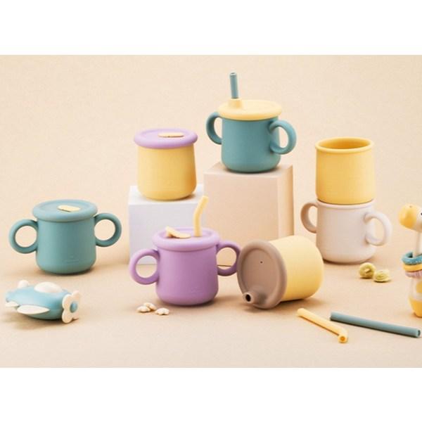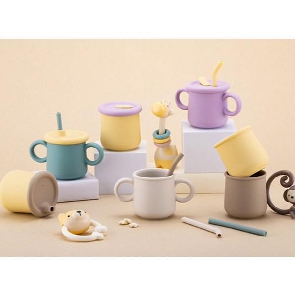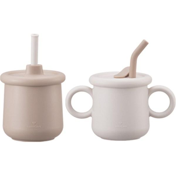Набор силиконовых чашек-соломинок Lock&Lock Little Rub, 200 мл, обычный тип + носик, кремовый, бежевый, 1 комплект