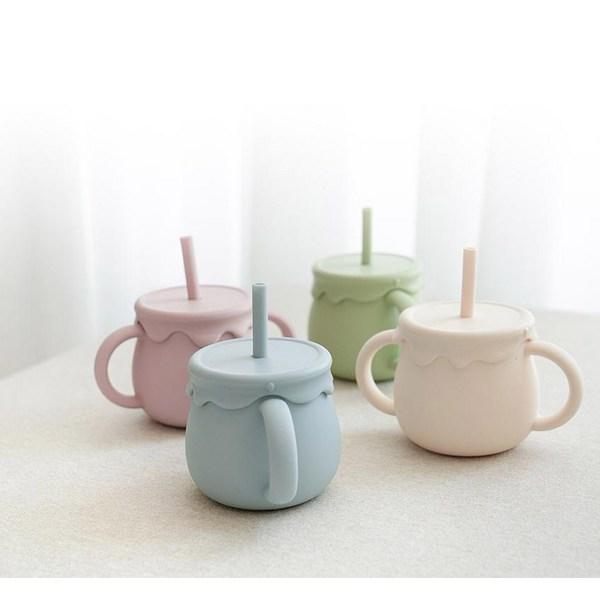 Little Cloud Baby Honey Pot Мульти-силиконовая соломенная чашка 250 мл, 1 шт, пыльно-синий