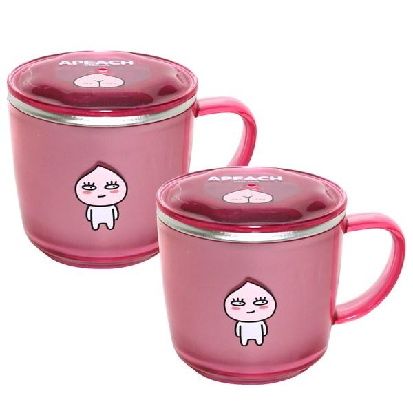 Чашка из нержавеющей стали Kakao с прозрачной крышкой, 2 чашки из нержавеющей стали с крышкой Apeach, 2 шт.