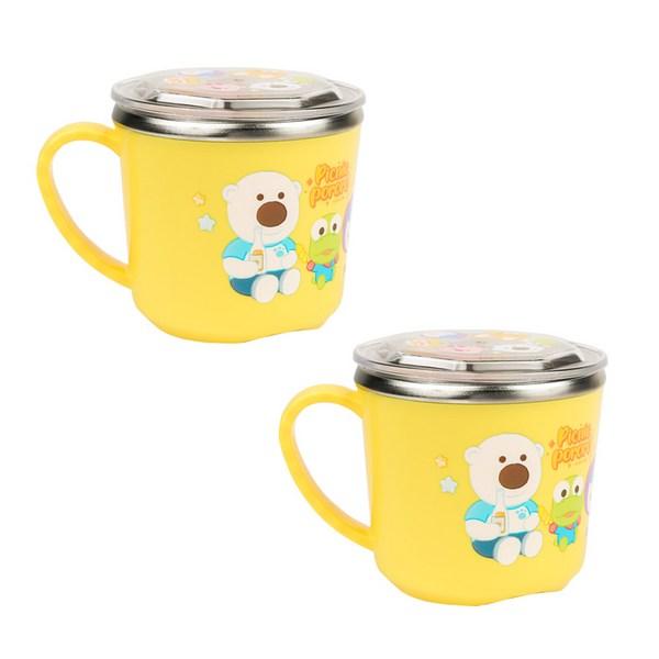 Lilpang Детская нескользящая чашка Pororo из нержавеющей стали 255 мл + набор крышек, разные цвета, 2 комплекта