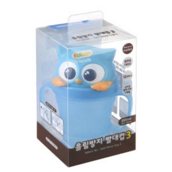 Edison Friends Соломенная чашка с защитой от проливания 3, Синий Сова, 1 шт, 200 мл