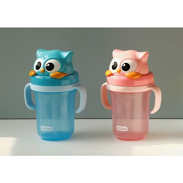 Edison Friends трехмерная соломенная чашка 2 с защитой от проливания 300мл, синяя сова, 1 шт.