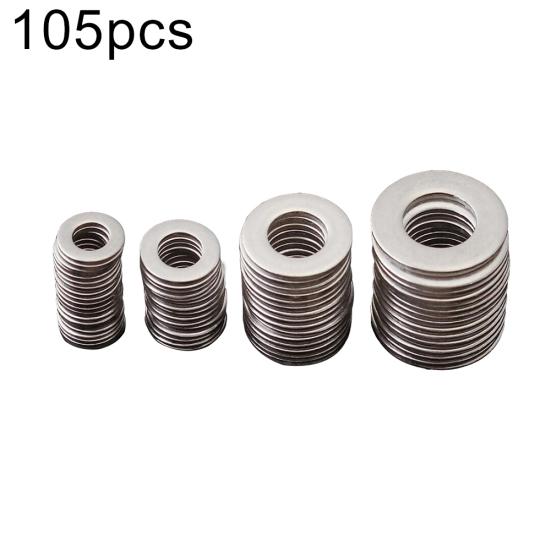105 шт., 6 размеров, прочный набор прокладок с плоской шайбой из нержавеющей стали