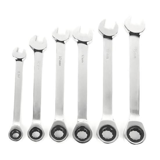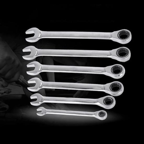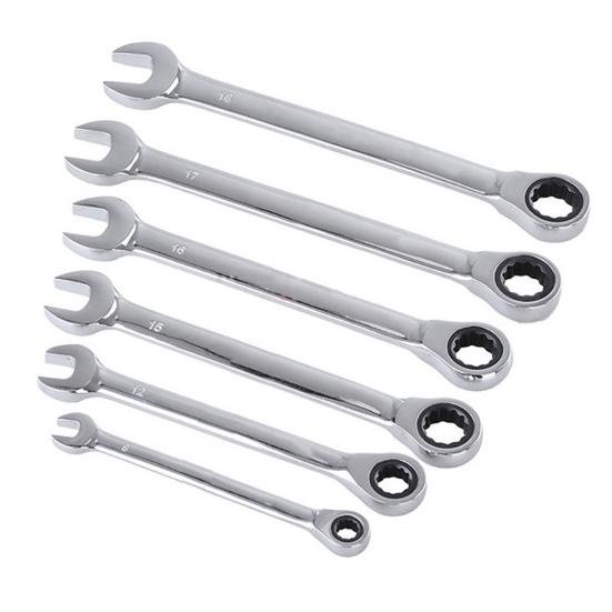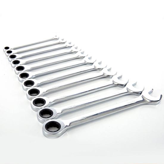 Набор реверсивных трещоточных ключей (8 мм до 19 мм) из прочной хром-ванадиевой стали с эргономичной рукояткой