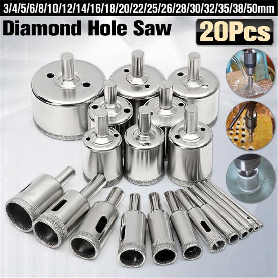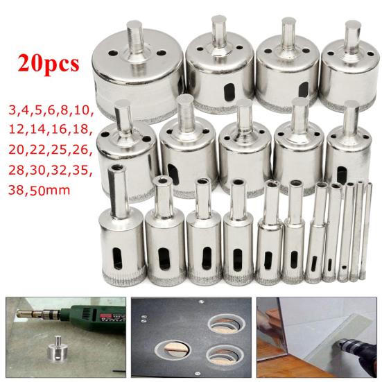 20 шт. 3-50 мм набор алмазных сверл для стекла, мрамора, гранита, кольцевая пила, инструмент