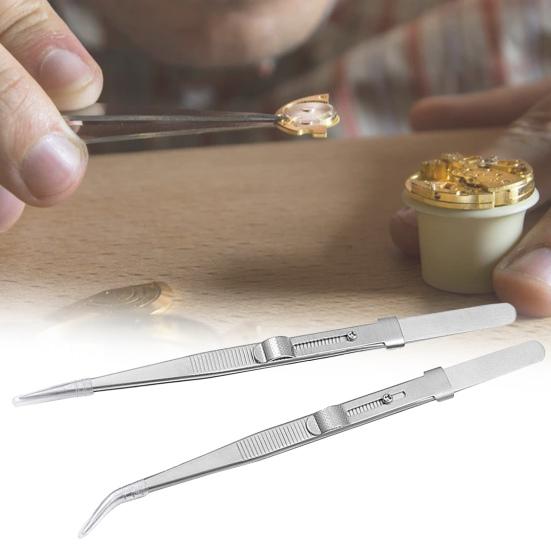 Матовый пинцет для ювелирных изделий, многоцелевой пинцет из нержавеющей стали с прямыми изогнутыми бриллиантами, ремонт часов