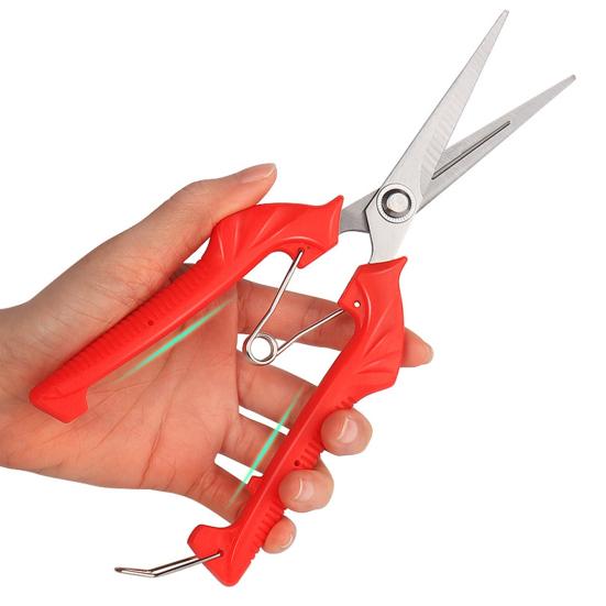 Рукоятка ножниц для обрезки выполнена с противоскользящими линиями, что затрудняет скольжение вниз и удобно держит, а также не утомляет руки после длительного удержания. Его хвост имеет предохранительный замок, который удобен для хранения.