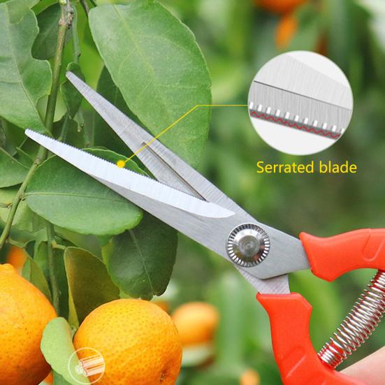 Благодаря эластичной пружине и конструкции автоматического отскока секаторы более экономичны.. Он износостойкий, устойчивый к ржавчине, высокая твердость и имеет острый край. Он подходит для сбора фруктов, обрезки, обрезки листьев, срезания цветов и т. д.