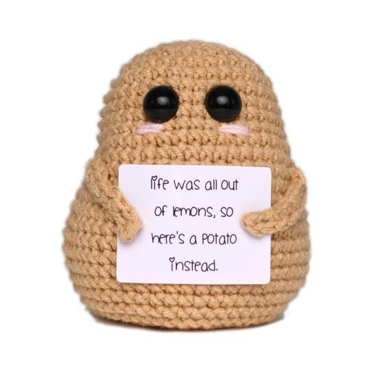 Представляем куклу-картошку, уникальную и очаровательную связанную крючком куклу, которая служит больше, чем просто декоративным элементом.. Это очаровательное украшение из картофеля идеально подходит для мероприятий, домашнего декора или настольных витрин, добавляя нотку прихоти и радости в любое пространство.. Это не только восхитительное дополнение к вашему окружению, но и помощник в эмоциональной поддержке, готовый украсить ваш день и обеспечить комфорт, когда вам это нужно больше всего.