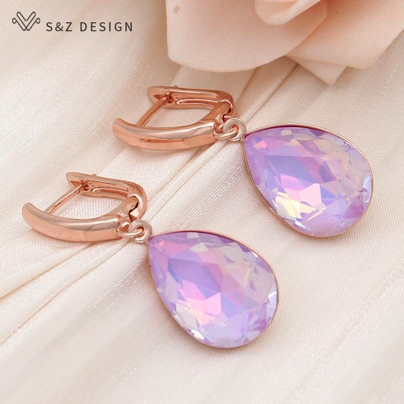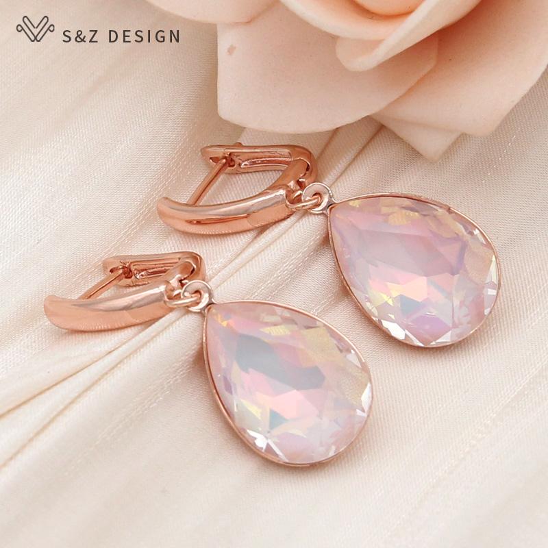 Модные висячие серьги с каплями воды и кристаллами для женщин, свадебные стильные серьги цвета розового золота, ювелирные изделия в подарок