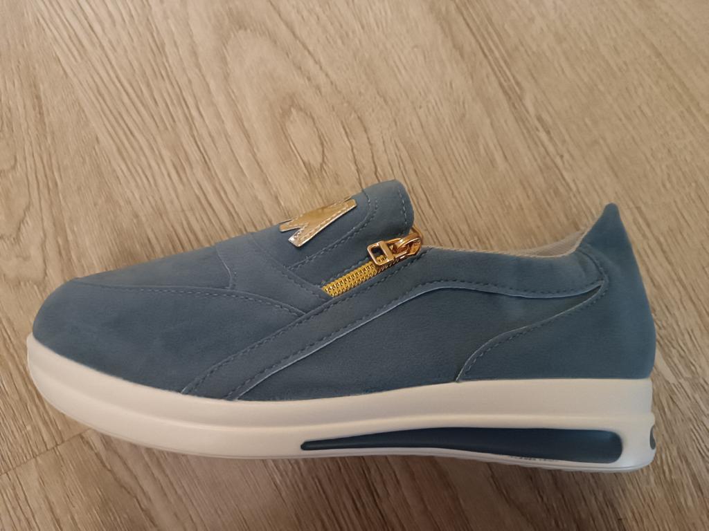С размером угадала, на свой 39, 25 см ступня заказала 40 размер. В длину хорошо, по ступне немного широко, думаю с носком в самый раз будет. Цвет бледно голубой, ближе к серому.На рекламе цвет ярче и сами получше. Замочки рабочие. В целом носить можно. Материал искусственная замша. Хотела еще белые заказать, теперь не буду. Продавцу отдельное спасибо за быструю доставку. Доставили за 3 недели, хотя некоторые посылки идут по 3 месяца. Просто не стали обьединяться с другими посылками, а сами отправили.