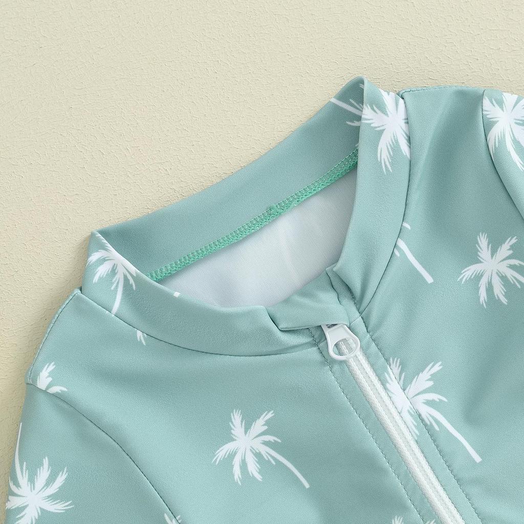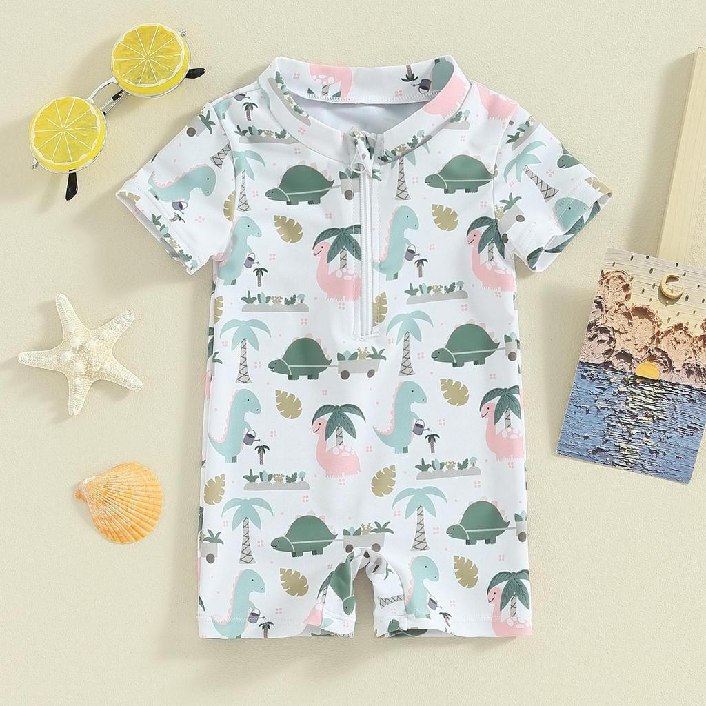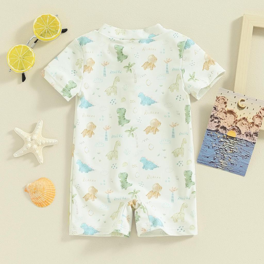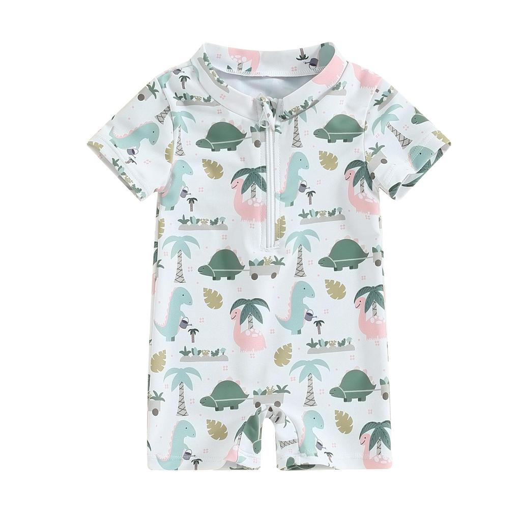 Детский летний купальник для мальчиков 3, 6, 12, 18 месяцев, 1, 2 лет, повседневный комбинезон с принтом дерева/динозавра на молнии и короткими рукавами, купальный костюм, пляжная одежда, купальный костюм