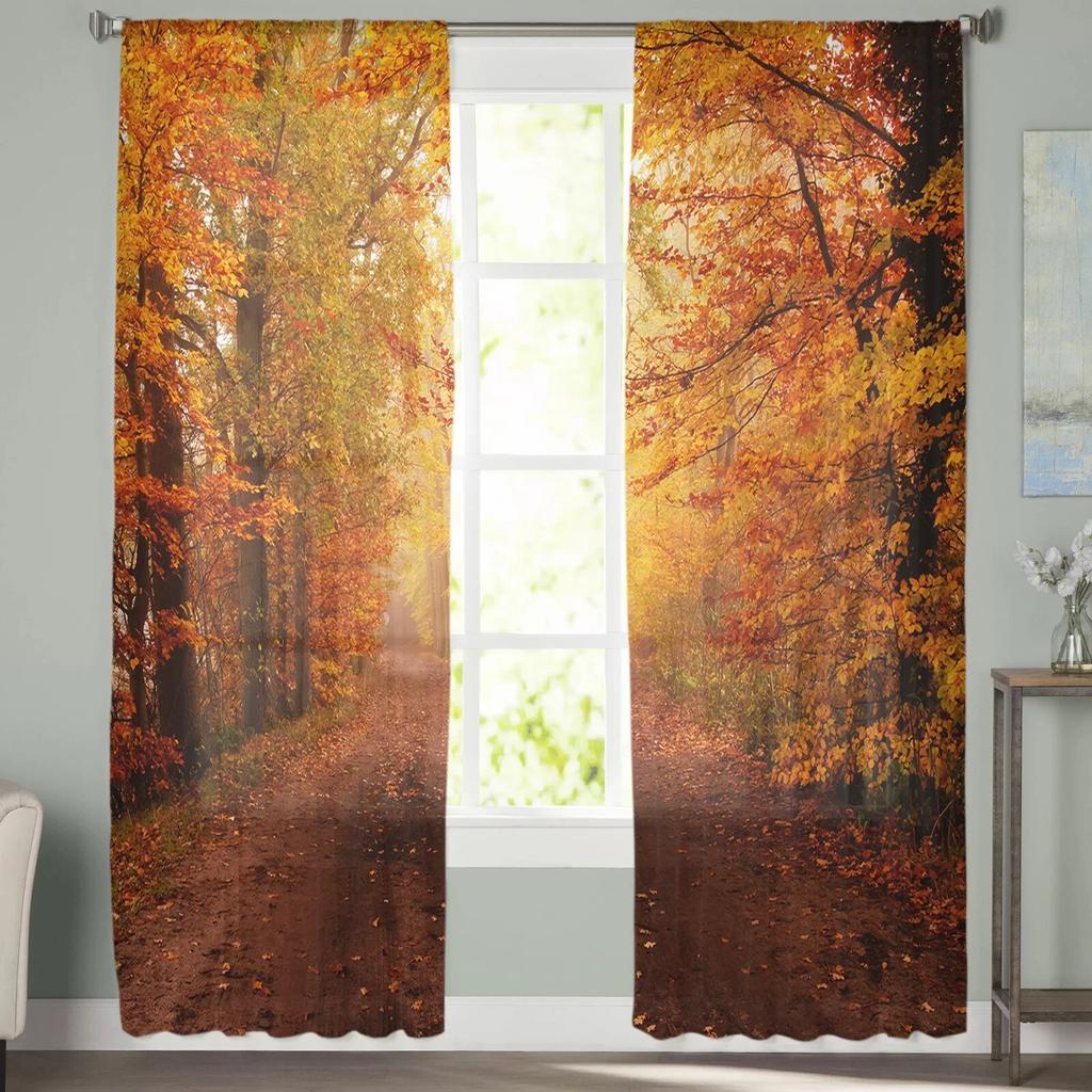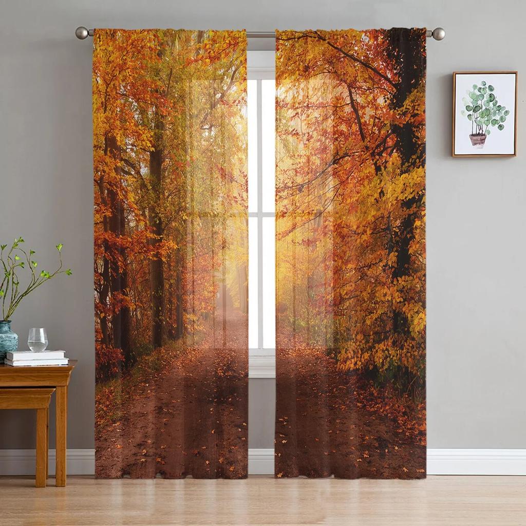 Шифоновые прозрачные шторы с кленовыми листьями и лиственным лесом для гостиной, украшения дома, оконная вуаль, тюлевые занавески, шторы