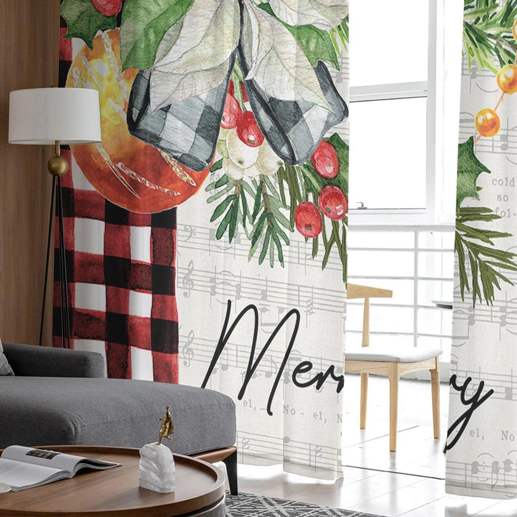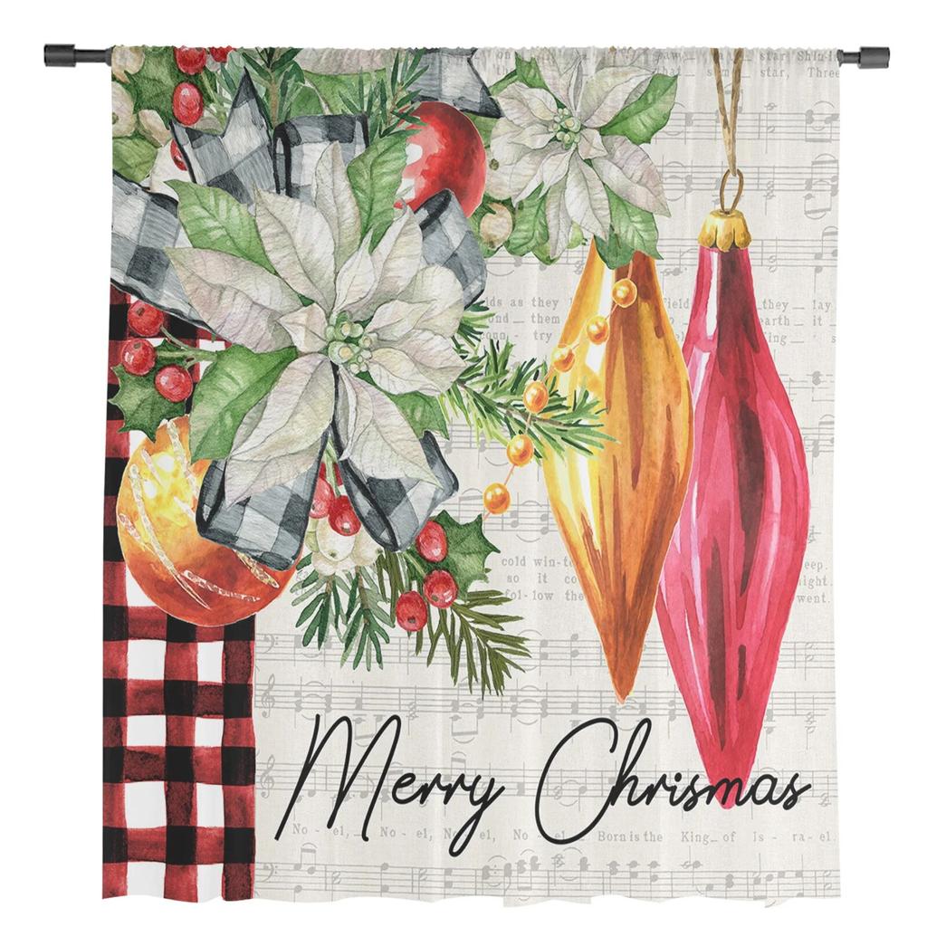 Рождественские прозрачные шторы с сосновыми иголками для гостиной, спальни, тюлевые занавески для кухни, вуаль, шторы, жалюзи, панели