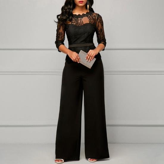 Выдолбленная кружевная пэчворк-конструкция заставляет вас выглядеть немного сексуально и красивее. И этот однотонный комбинезон обладает хорошим тонким эффектом, который показывает вашу очаровательную фигуру.